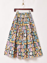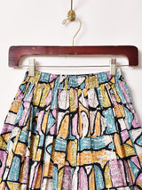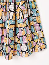 よく見ると柄の中にアルファベットが隠れており、ユニークなデザインのスカート。裏地付きで、ハリのあるコットン素材です。