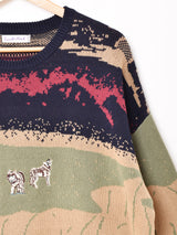 自然の中にいるオオカミをイメージしたデザインが目を惹くセーター。オーバーサイズなので男女問わず着ていただける一着です。