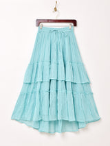 後ろの裾が長く、エレガントな印象のフィッシュテールスカート。さらりと軽いインド綿生地で、裏地付きですが透け感があります。