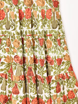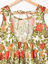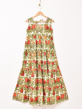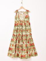 大胆な花柄が目を惹くノースリーブワンピ。背中は紐で結ぶタイプになっており、インナーや肌見せスタイルにおすすめです。ふんわりと広がるティアードデザインもポイント。裏地はありませんが、コットンリネンの風合いの良い生地感です。