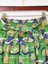 ふんわりと広がるシルエットに、夏の定番アフリカンバティック柄が目を惹くスカート。切り替え部分のはしごレースもポイント。裏地はありませんが、風合いの良いコットン生地です。