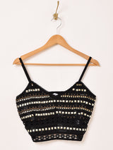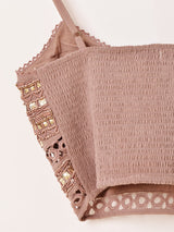 ビーズを贅沢に使って刺繍を施したビスチェ。裾はカットワークレース生地が充てられています。ワントーンながらもゴールドのメタルビーズの煌めきがアクセントに。レイヤードコーデのアイテムとして重宝する一着です。