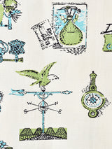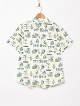 雰囲気のよい家庭グッズが散りばめられた半袖シャツ。程よい厚みでハリのある生地感です。