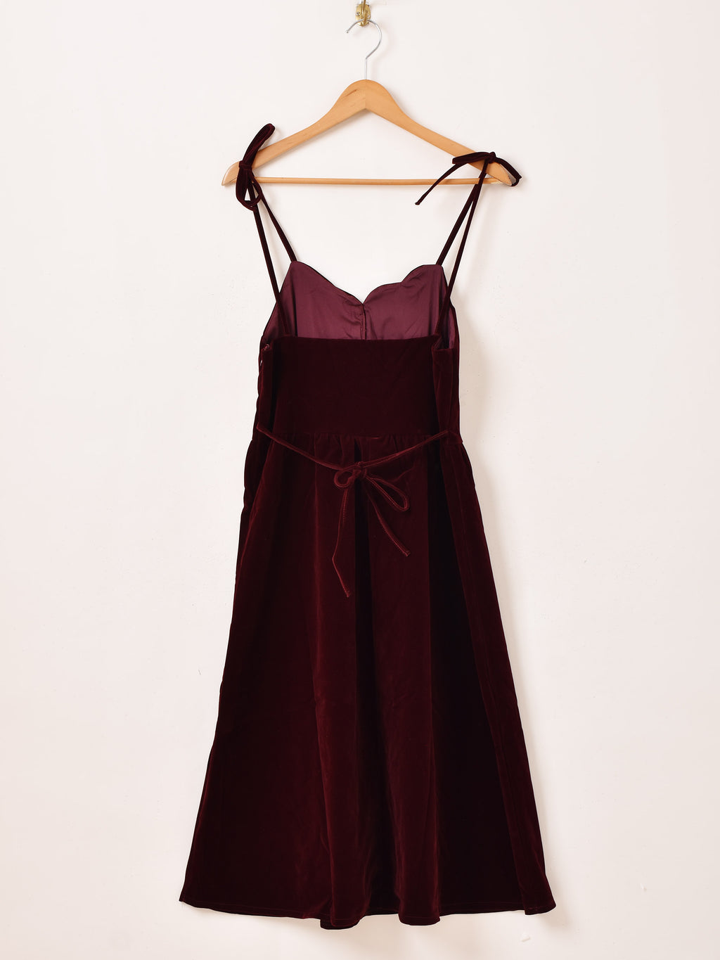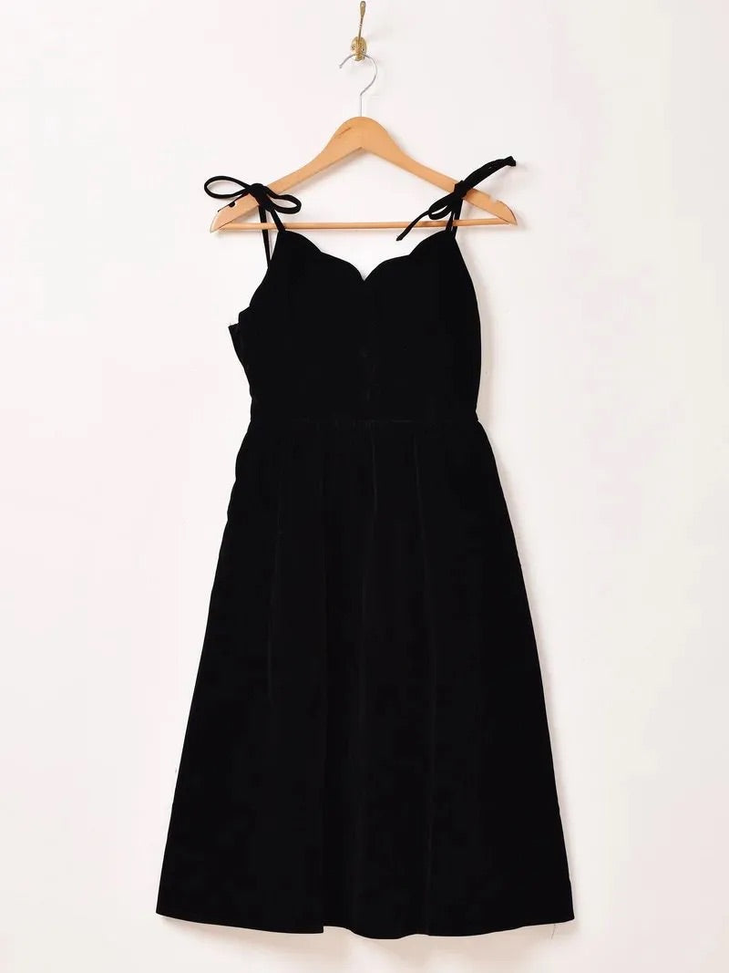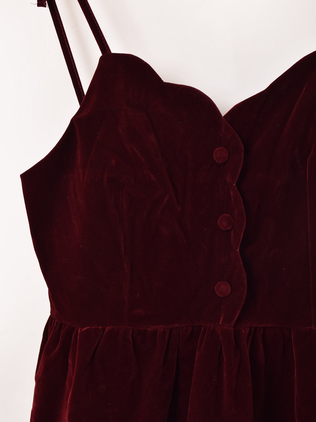 フロントのラインがV字のウェーブ型になっていて、デコルテを綺麗に見せてくれそうなキャミワンピ。肩紐は調節可能なのでお好みのサイズ感で着ていただけます。ベロアの上品な生地感もポイントです。