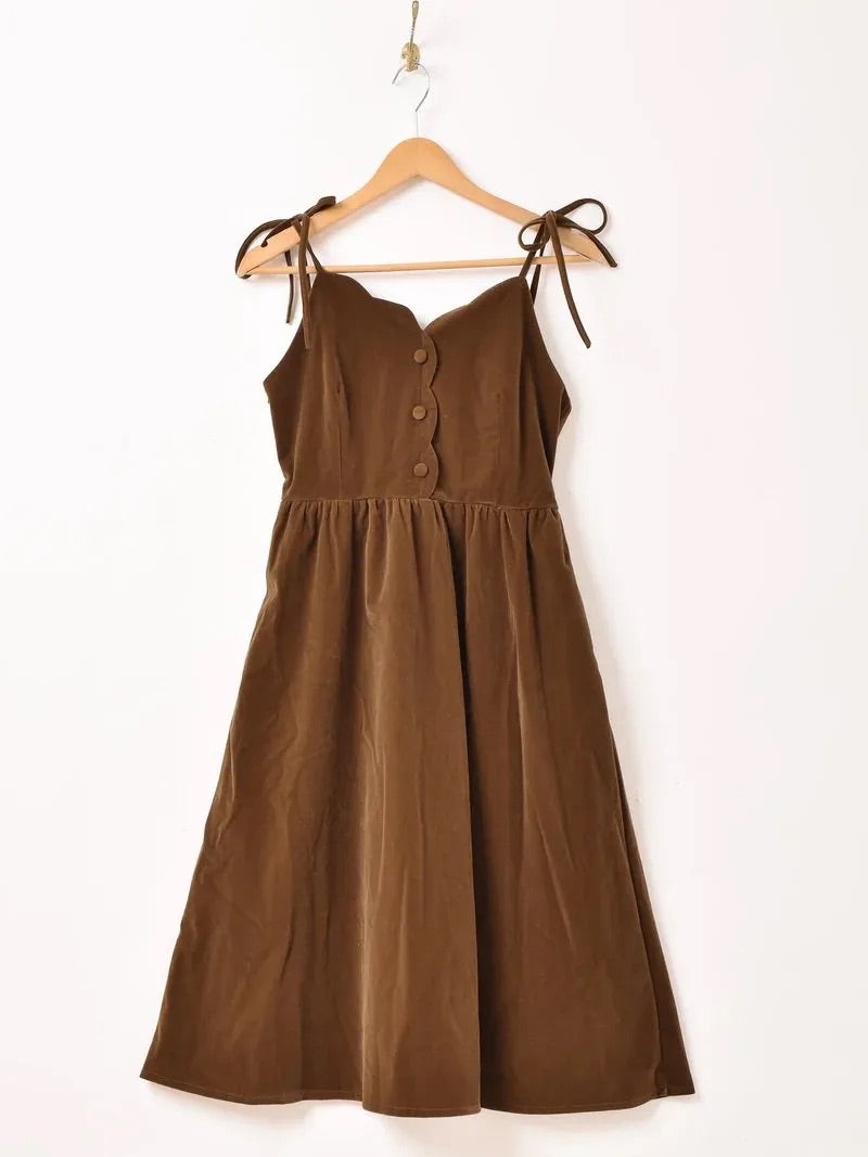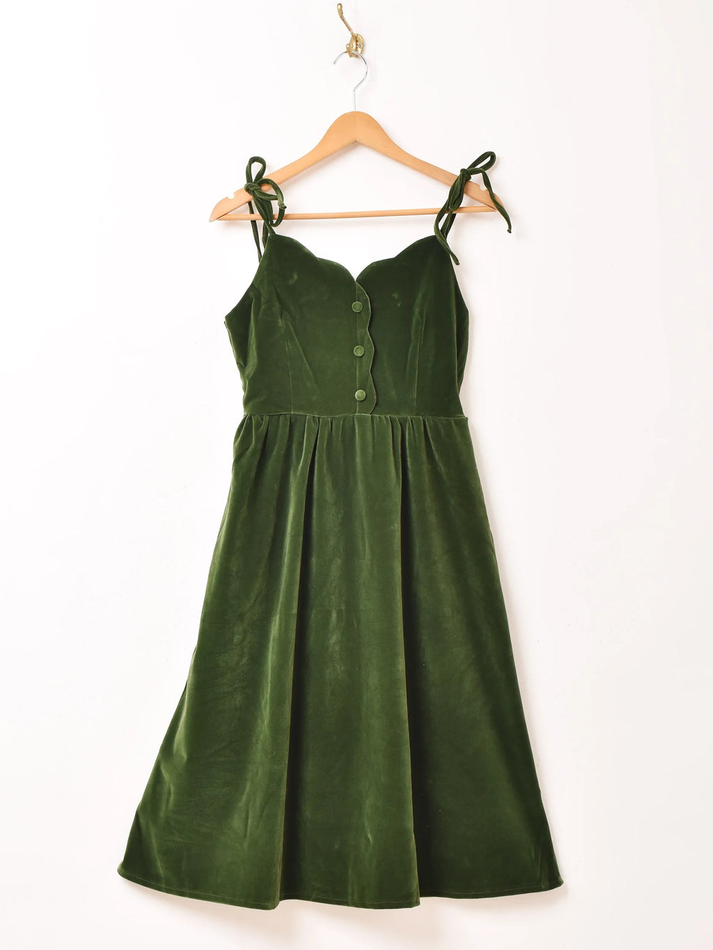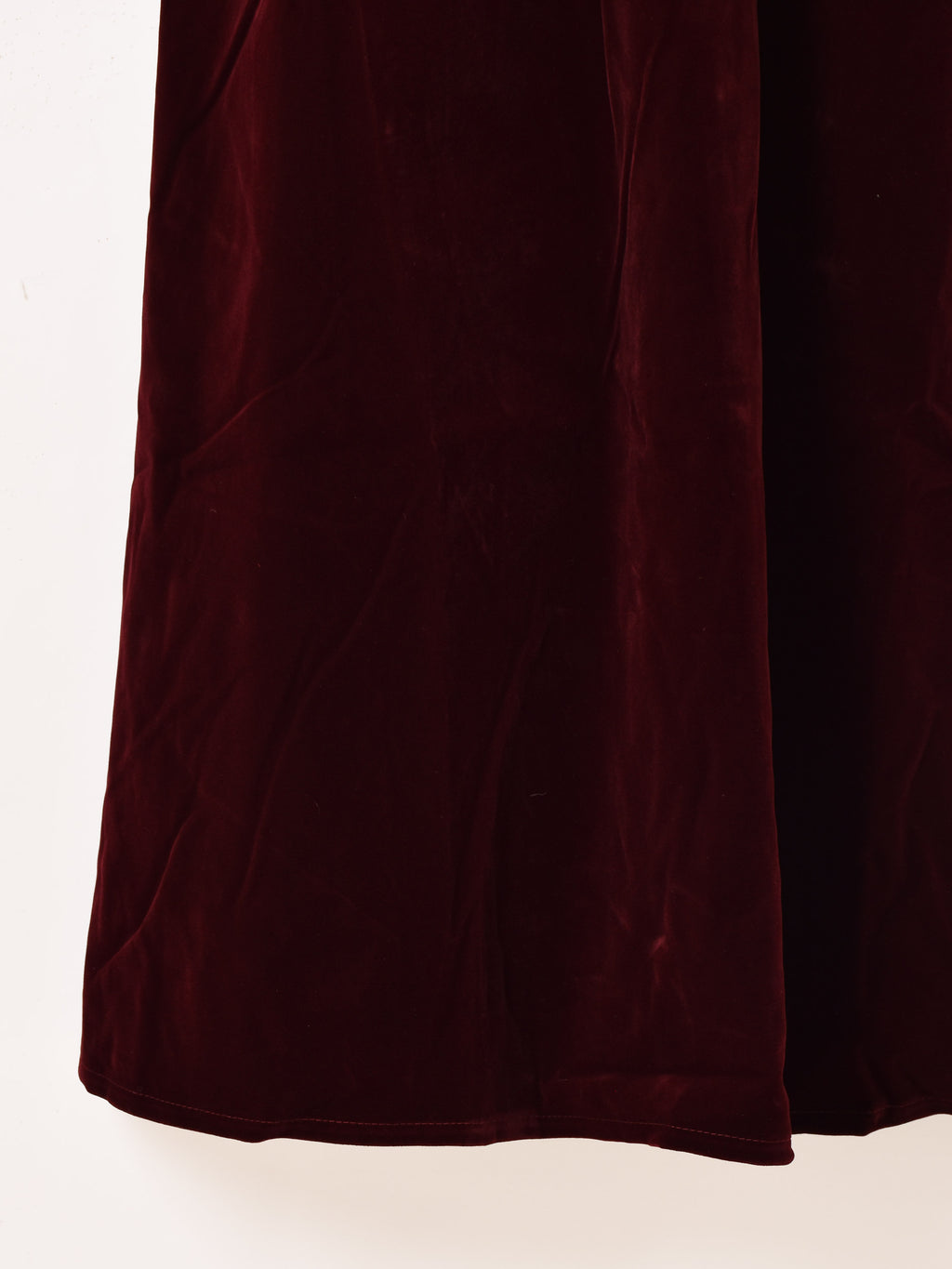 フロントのラインがV字のウェーブ型になっていて、デコルテを綺麗に見せてくれそうなキャミワンピ。肩紐は調節可能なのでお好みのサイズ感で着ていただけます。ベロアの上品な生地感もポイントです。