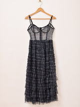 【2色展開】Meridian チェック柄 チュール コルセット キャミソールワンピース