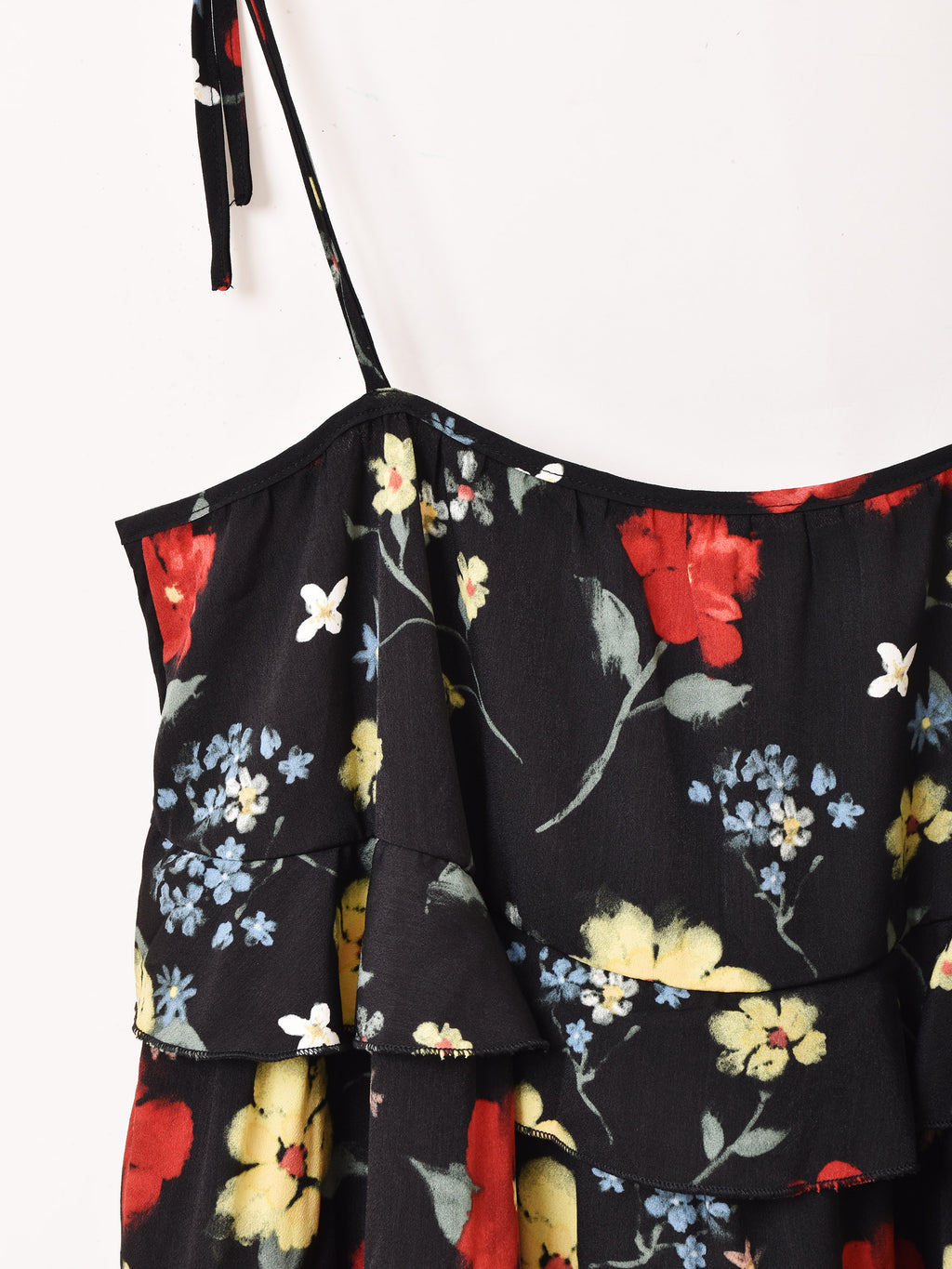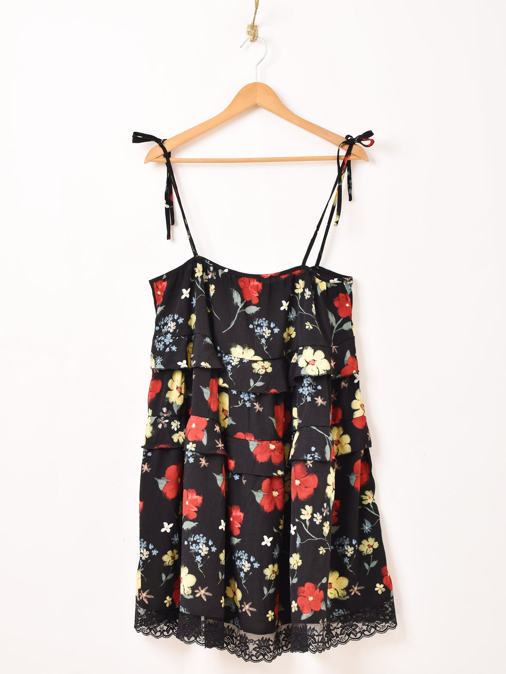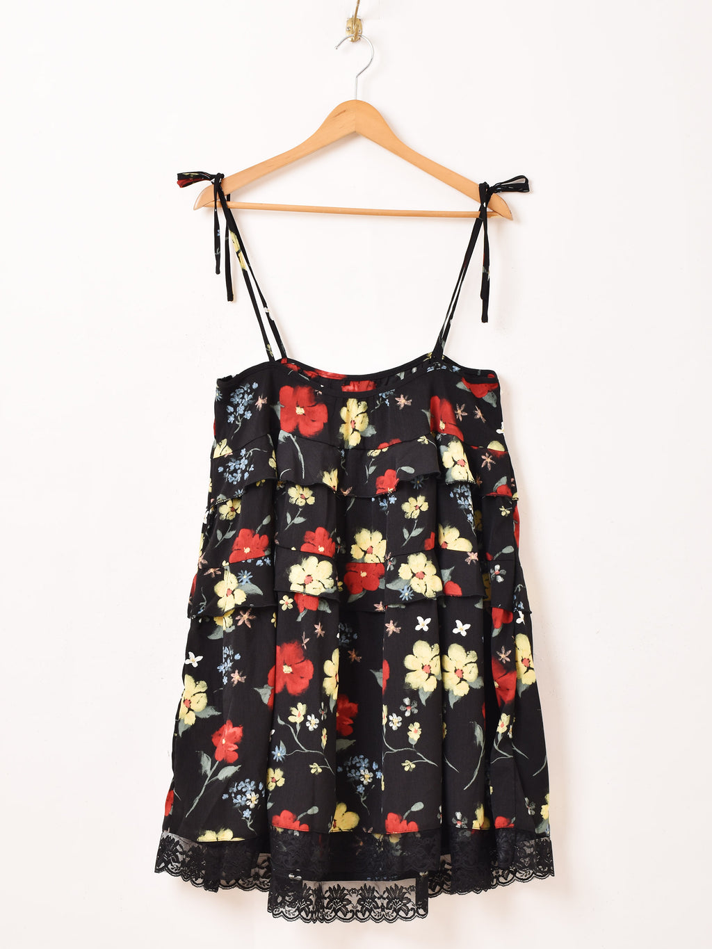 【2色展開】Meridian 花柄 フリル ミニ キャミソールワンピース