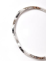 聖書の一節が刻印された2.5mm幅の角棒を捻って整形したバングル。