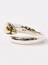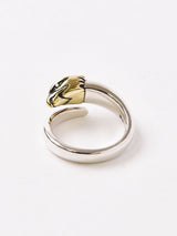 真鍮製の鷲の頭とシルバーの異素材コンビのリング。