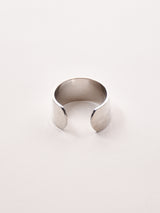 ロジウムメッキを施した槌目の入った真鍮製のリング。
