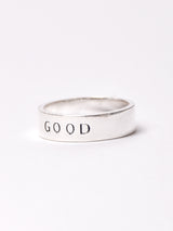 「GOOD」と刻印が入ったシンプルなブラスリング。