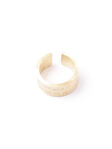 成形から文字の打刻、研磨まですべてハンドメイドで制作された真鍮のリング。