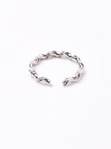 リボンをねじったようなデザインのリング。真鍮にロジウムメッキを施しています。