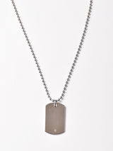 ロジウムメッキを施した真鍮製のIDプレートを使ったネックレス。