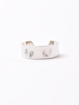 放射状に描かれた線がモチーフのリング。真鍮にロジウムメッキを施しています。