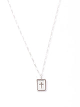 ロジウムメッキを施した真鍮製のトップで、クロスをモチーフにしたネックレス。チェーンは合金製で、ロジウムメッキを施しており、45cm~50cmでサイズ調整が可能。ヴィンテージパーツを使用したリメイクアイテムです。