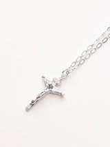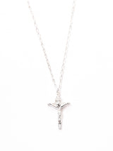 ロジウムメッキを施した真鍮製のキリストをモチーフにしたネックレス。チェーンは合金製で、ロジウムメッキを施しており、45cm?50cmでサイズ調整が可能。ヴィンテージパーツを使用したリメイクアイテムです。
