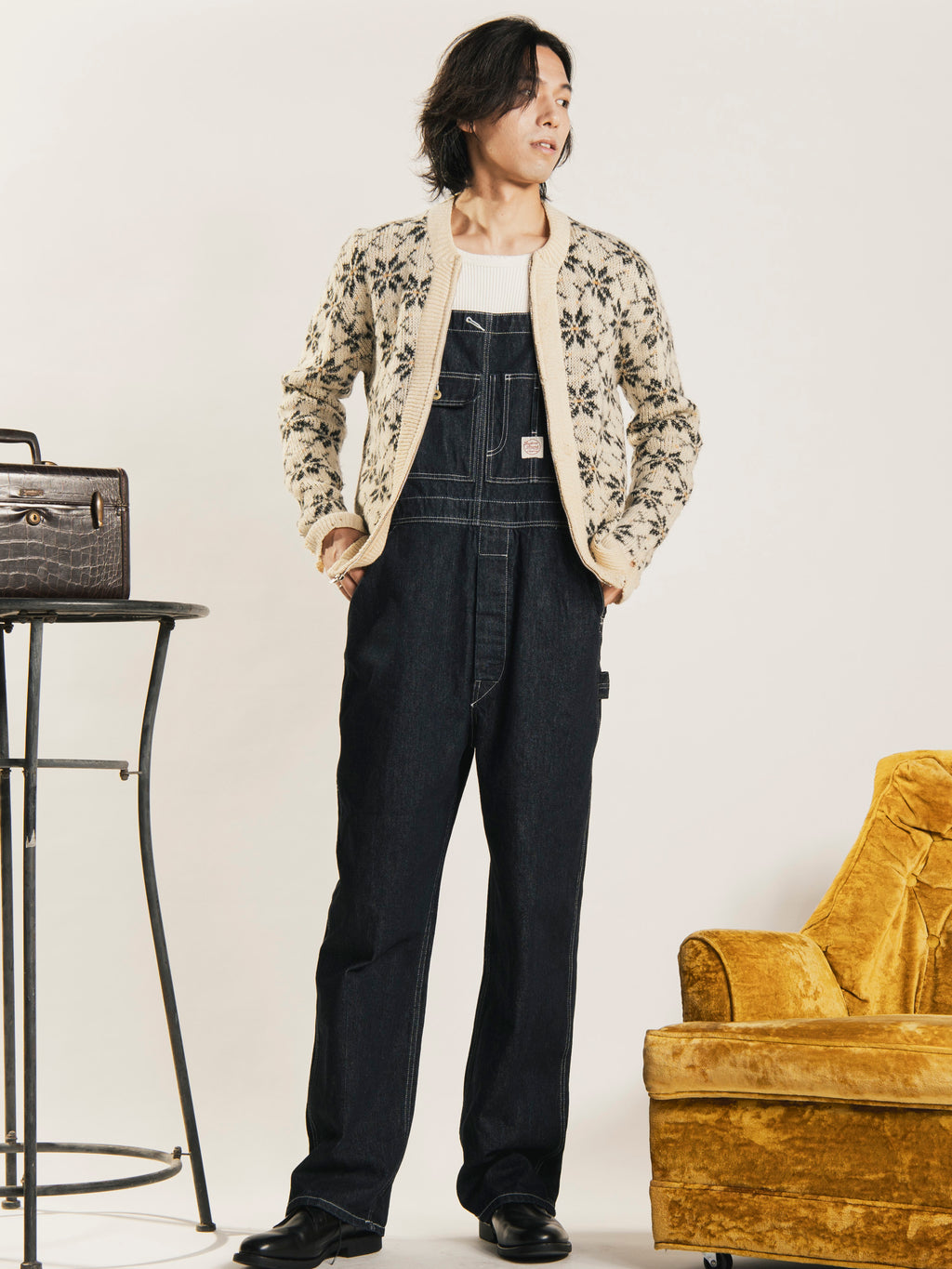 ワークなディテールとインディゴブルーのデニム生地がアメカジらしい雰囲気のオーバーオール。後ろは通称"ローバックスタイル"と呼ばれ、すっきりとした印象に仕上げてくれます。Backesのロゴデザインもポイント。