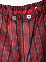 雰囲気よい柄の入ったストライプが魅力のパジャマパンツ。おそらくポリエステル、コットン素材で光沢あるつややかな生地感です。