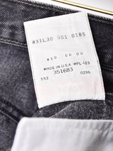 比較的ルーズなフィッティングのアメリカ製リーバイス501。自然な色落ちのブラックカラーでスタイリングに取り入れやすい一着です。