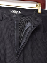 ストライプ状の凹凸デザインが施されたクールな一枚。すっきりとしたテーパードシルエットが魅力。おそらくポリエステル素材で、程よく厚みのあるさらっとした生地です。