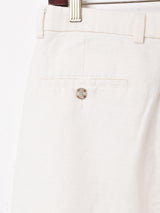 ホワイトで爽やかな印象のリネン混パンツ。さっぱりとした生地感です。