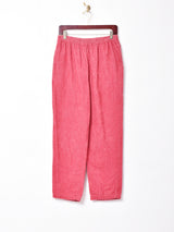 レッドとピンクの中間のようなカラーが魅力のイージーパンツ。コーディネートの差し色にぴったりの一枚。ストレスのない履き心地が嬉しいウエストゴム仕様で、薄手の細畝コーデュロイ生地です。