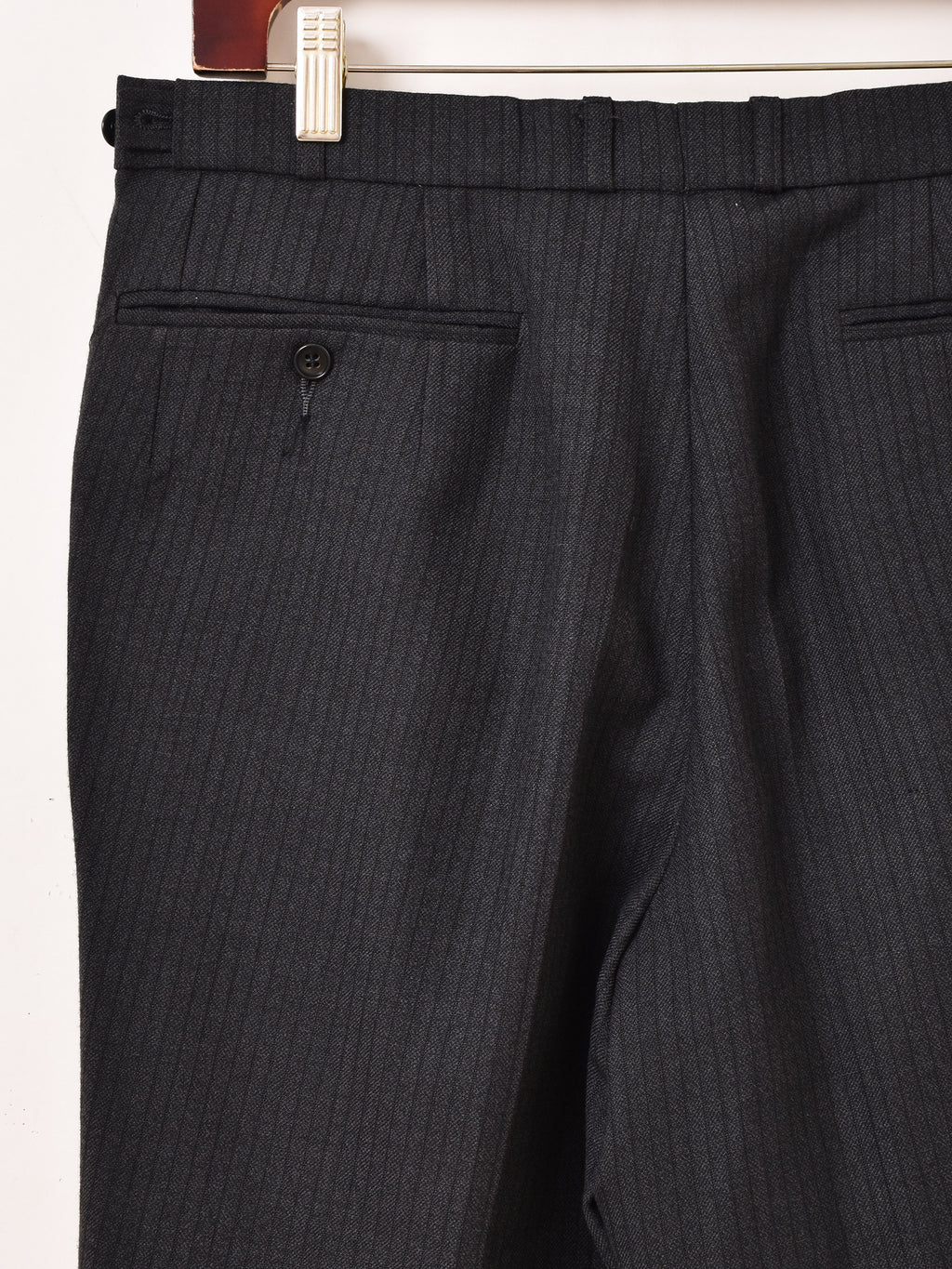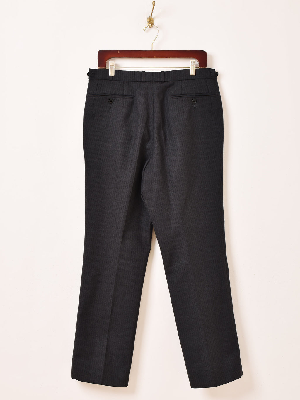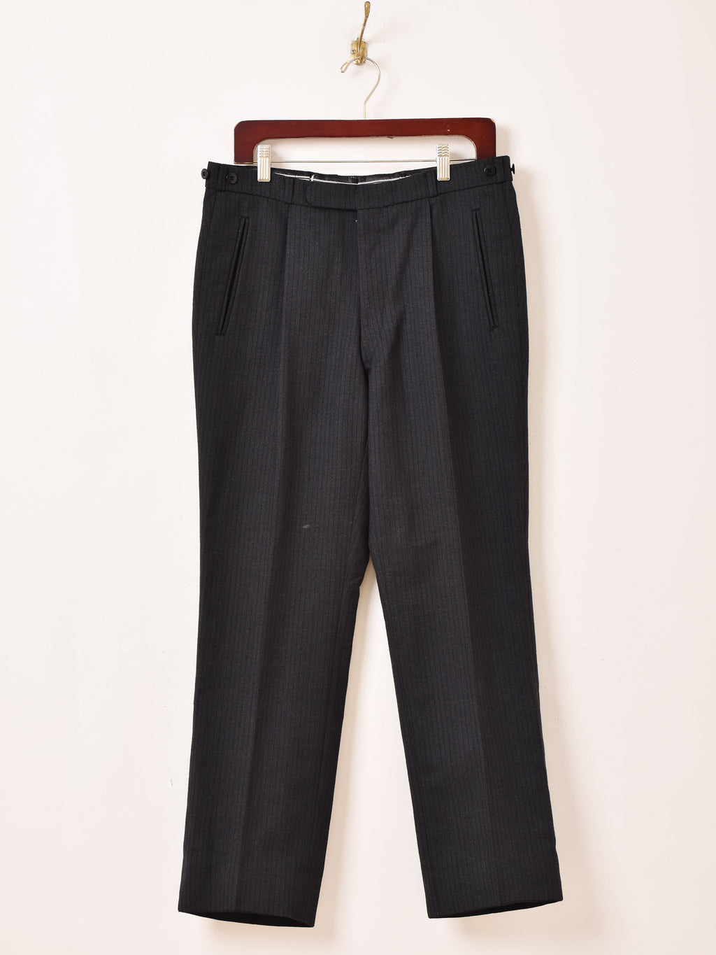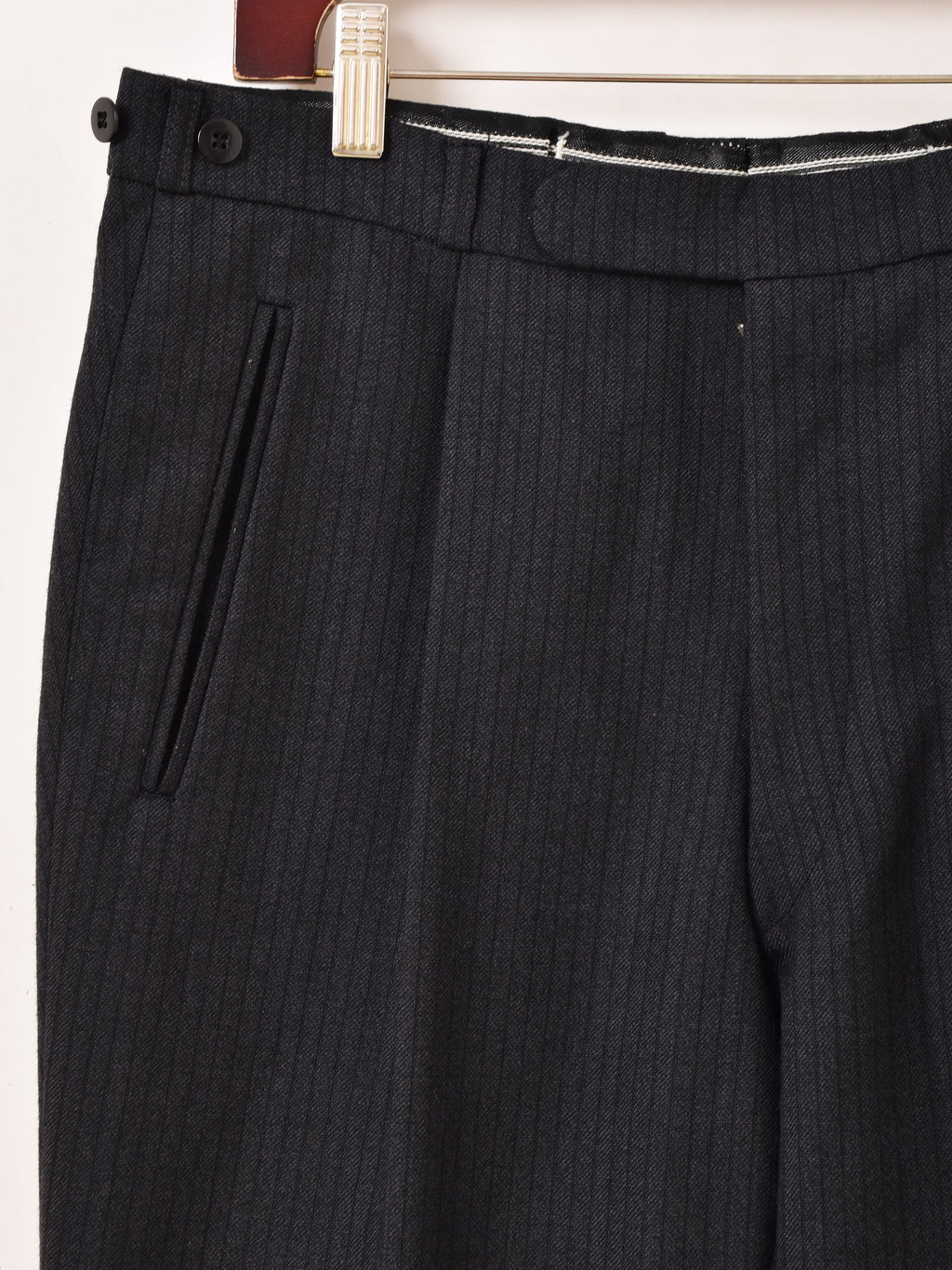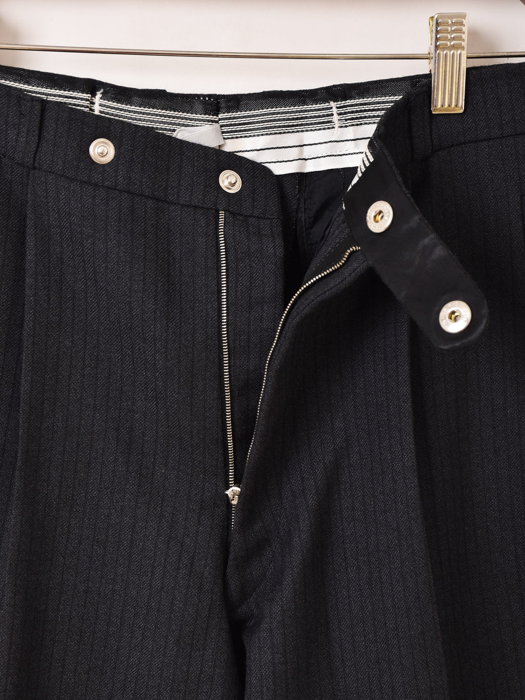 ブラックボディにさりげないストライプが洒落たトラウザー。センタープレスとタック入りですっきりと履きこなせます。