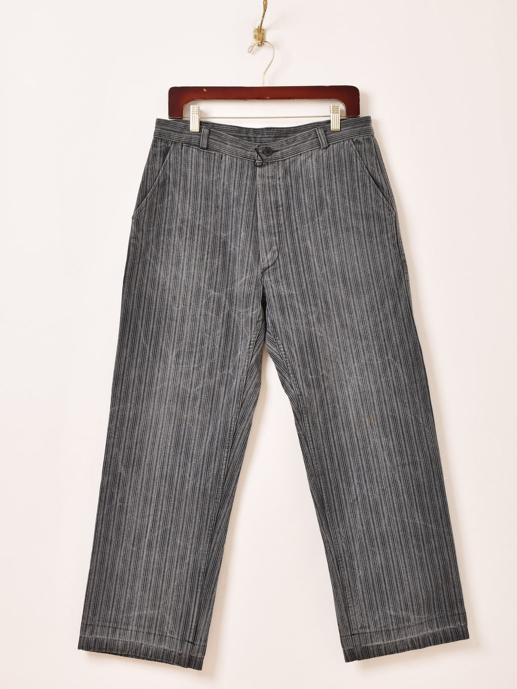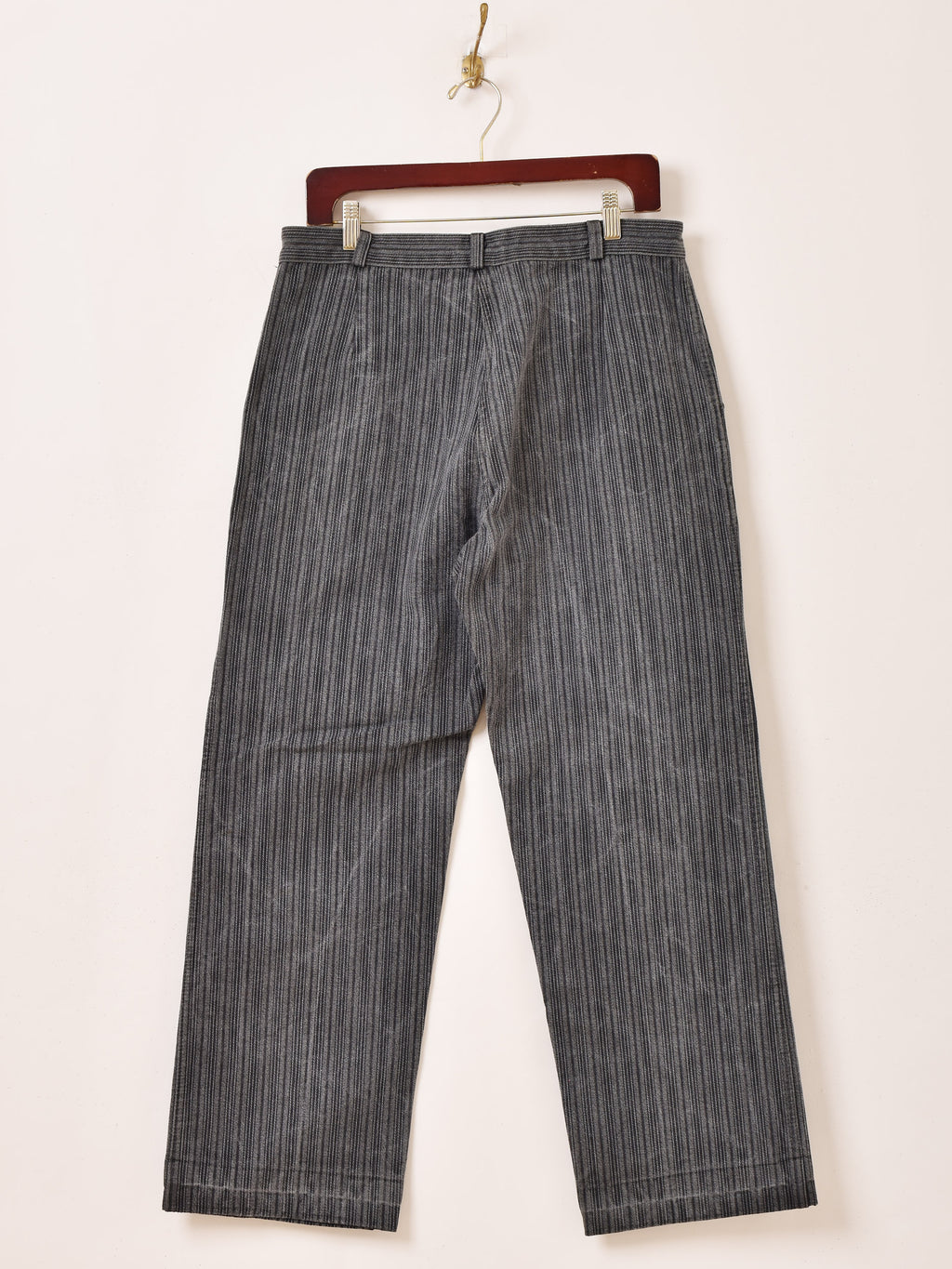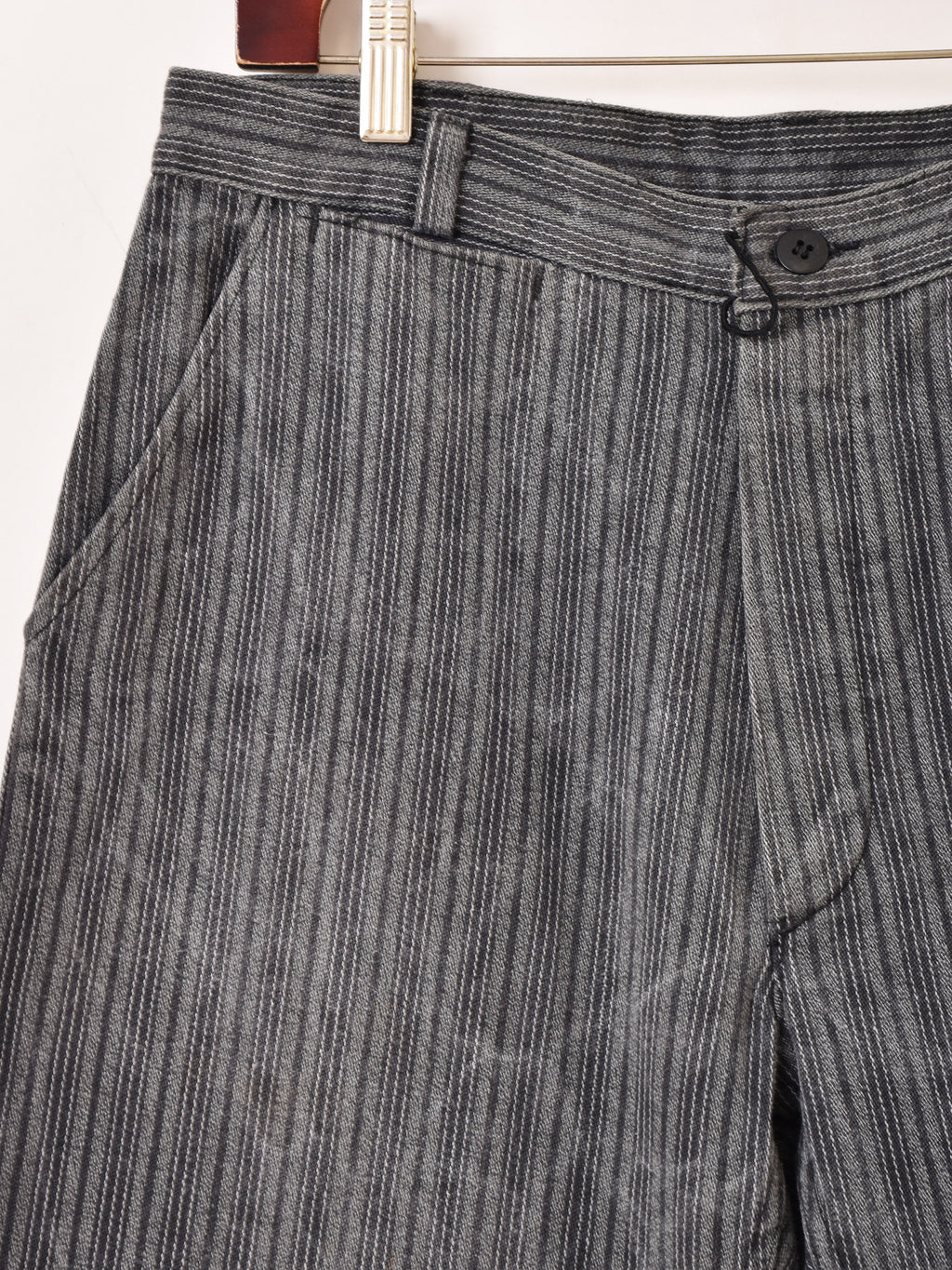 ストライプのワークパンツ。しっかりとハリのあるコットンで仕立てています。