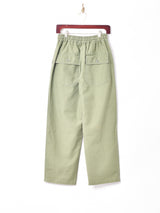 バックのフラップポケットがポイントのイージーパンツ。パナマ織りの様な横状に織りが入ったコットン生地を使用しています。ハリがありしっかりとしていますが涼し気な肌触りが魅力です。ややテーパードシルエットですっきりと履いていただけます。カジュアルに合わせやすい3色展開です。