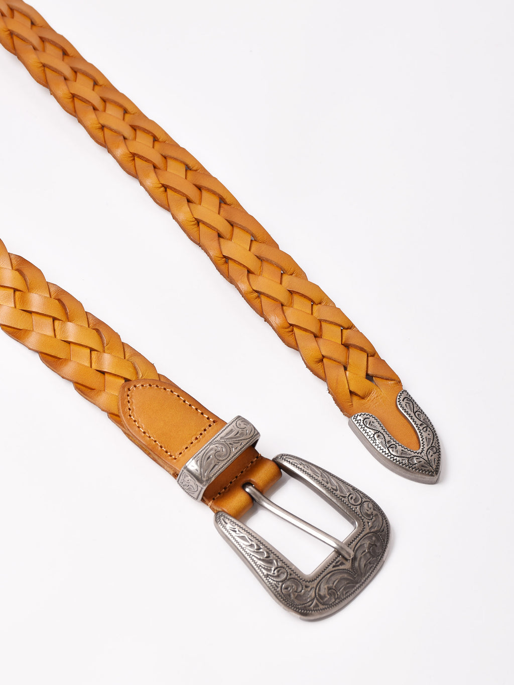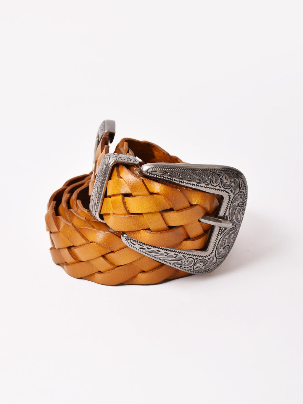人気のウエスタンデザインの編み込みレザーベルト。エッジの効いたスタイリングに仕上げてくれる一点です。