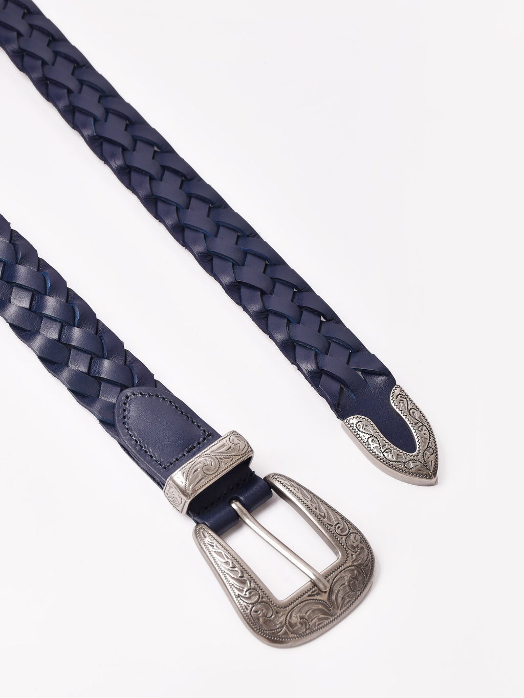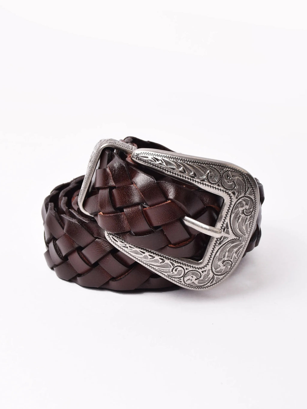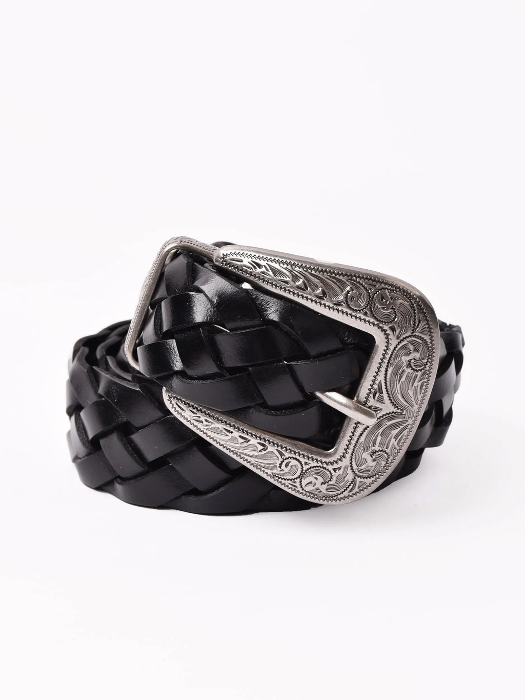 人気のウエスタンデザインの編み込みレザーベルト。エッジの効いたスタイリングに仕上げてくれる一点です。