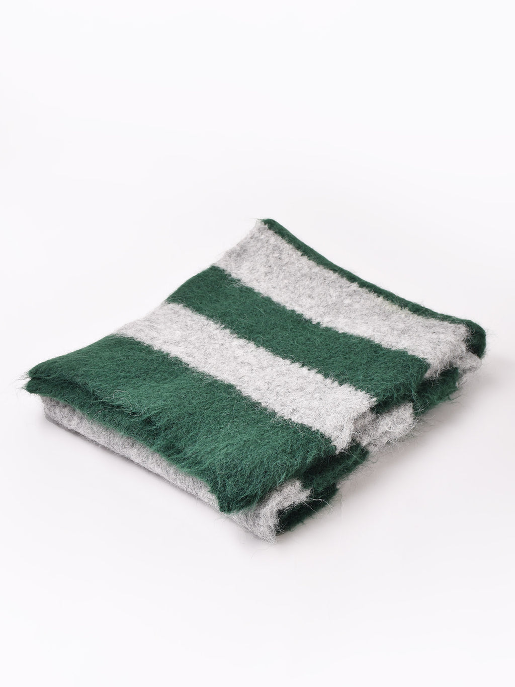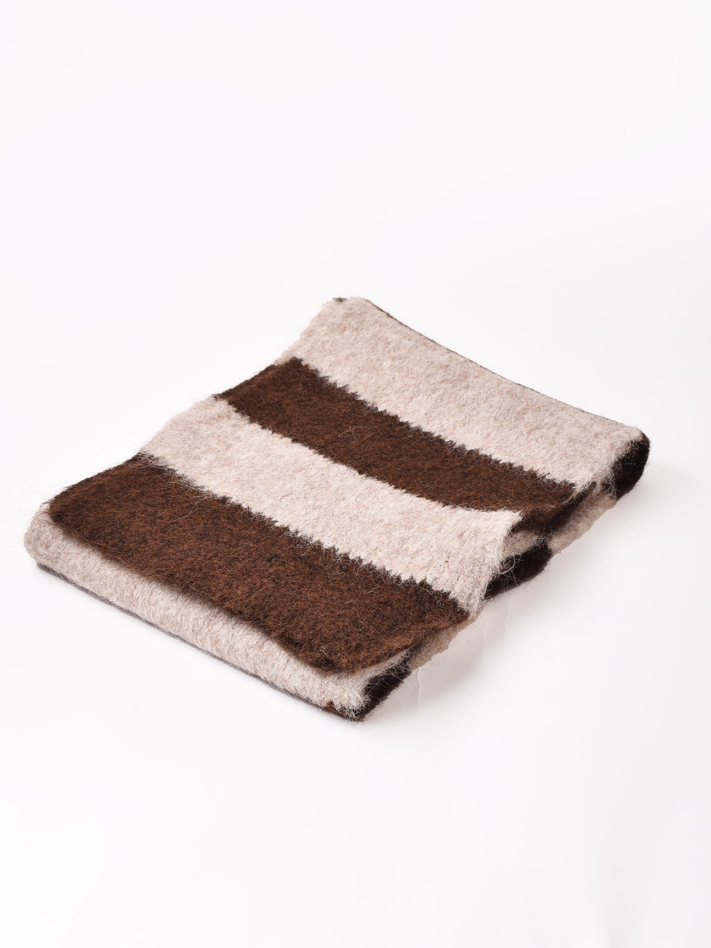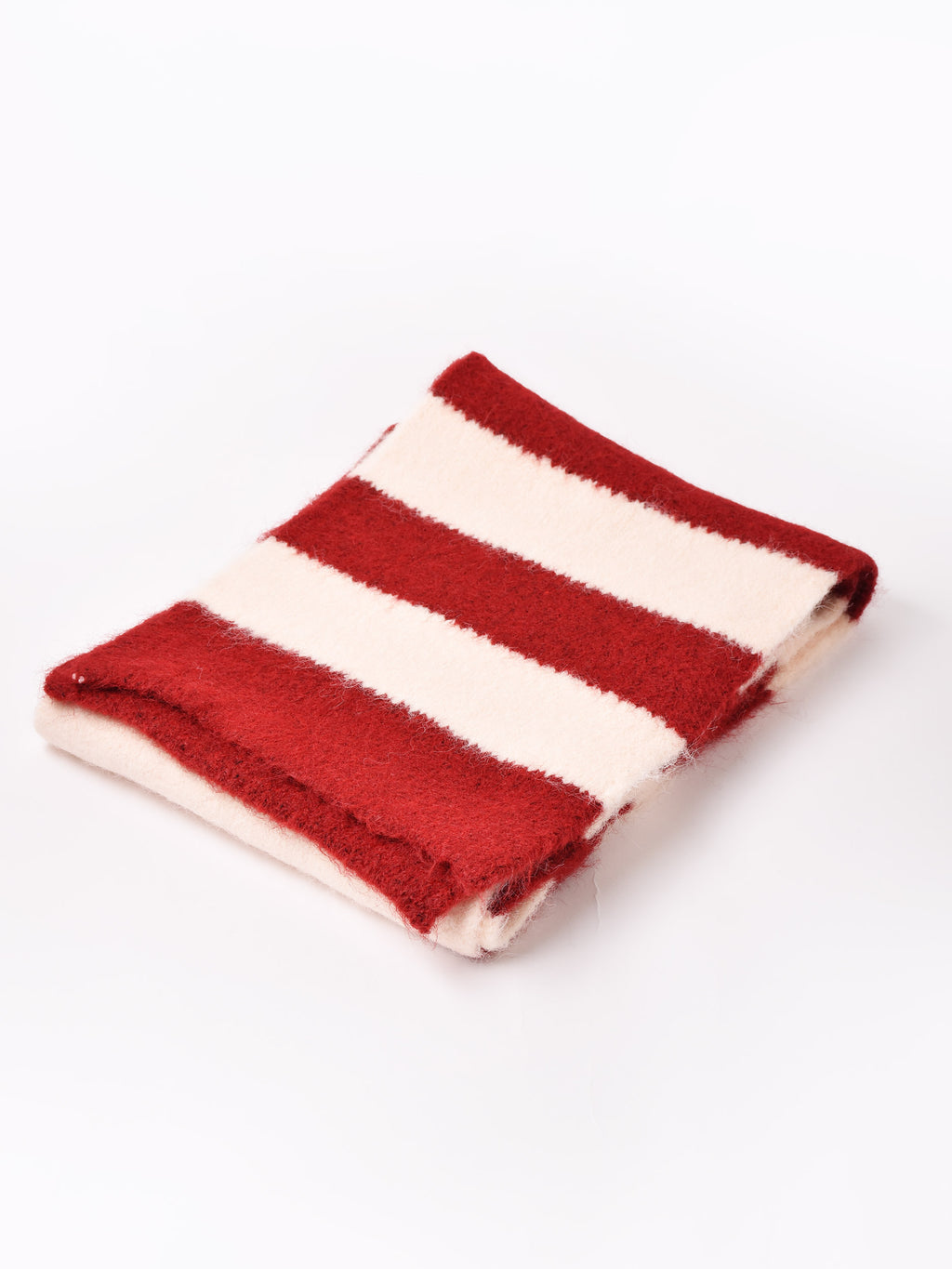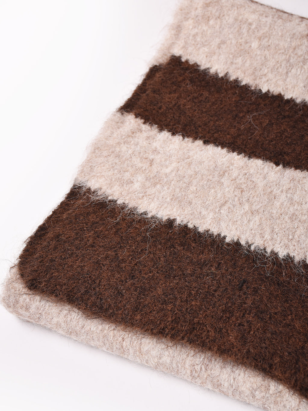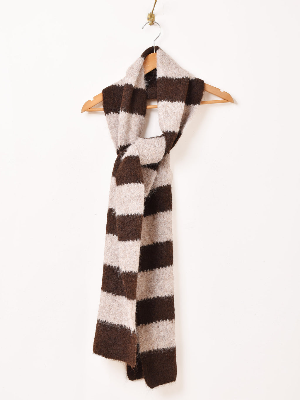 シンプルで使い勝手の良いボーダー柄のマフラー。もっちりと厚みのあるニット生地で仕立てた、あたたかみのある一点です。