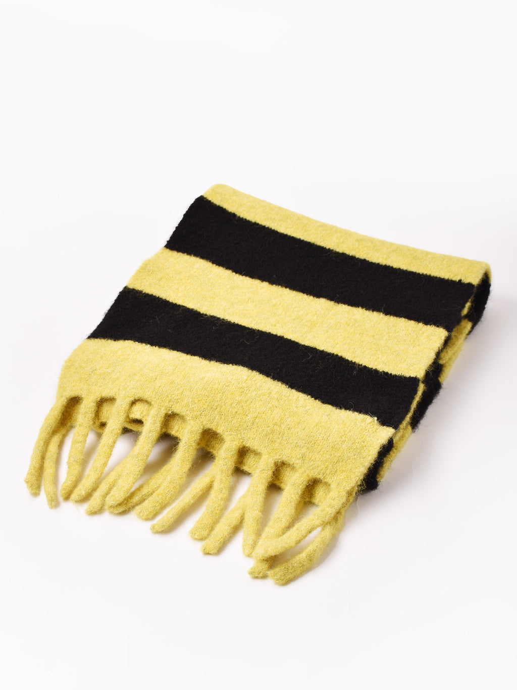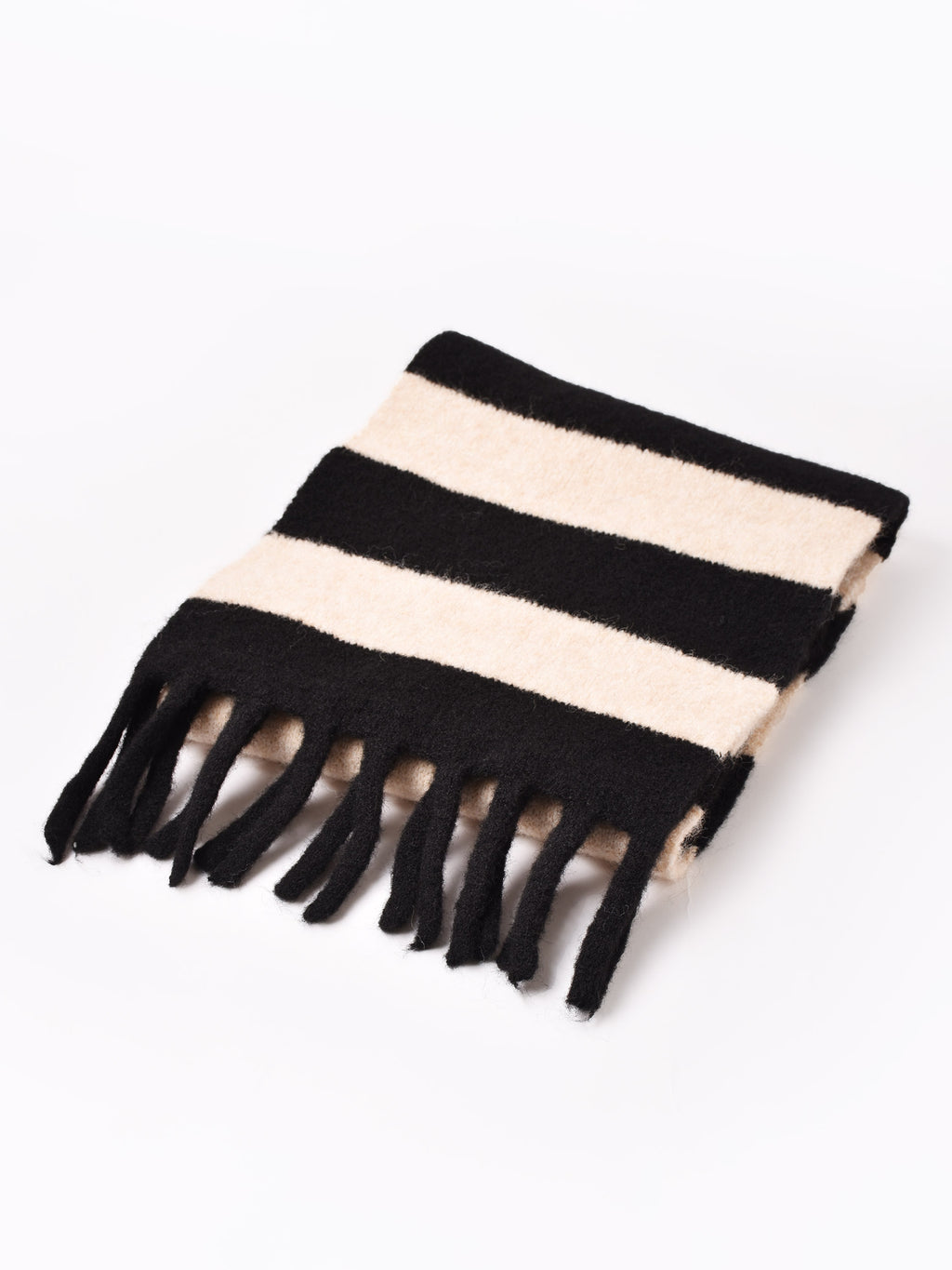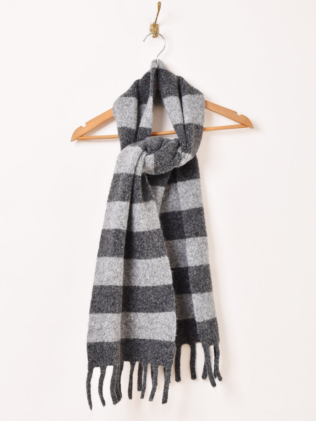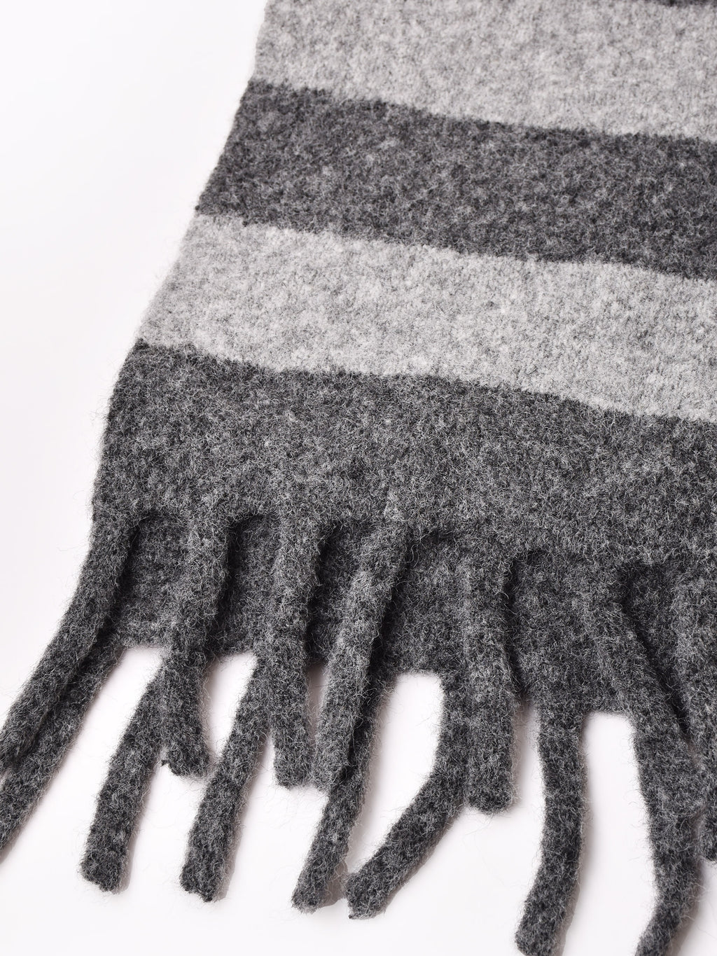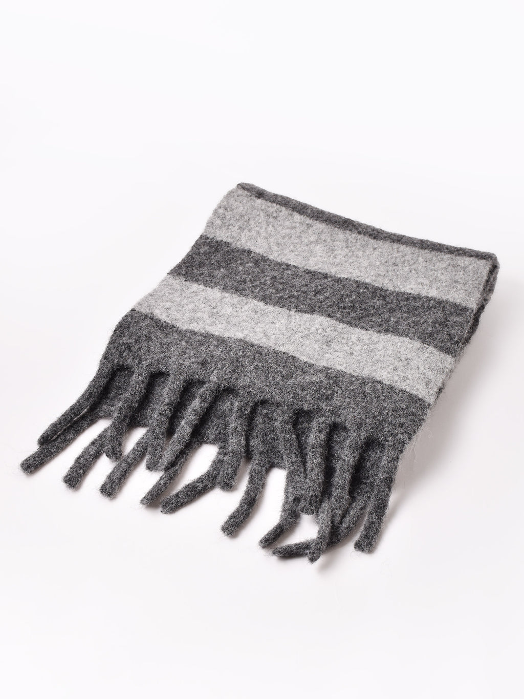 シンプルで使い勝手の良いボーダー柄のマフラー。柔らかな肌触りのニット生地で仕立てた、あたたかみを感じる一点です。