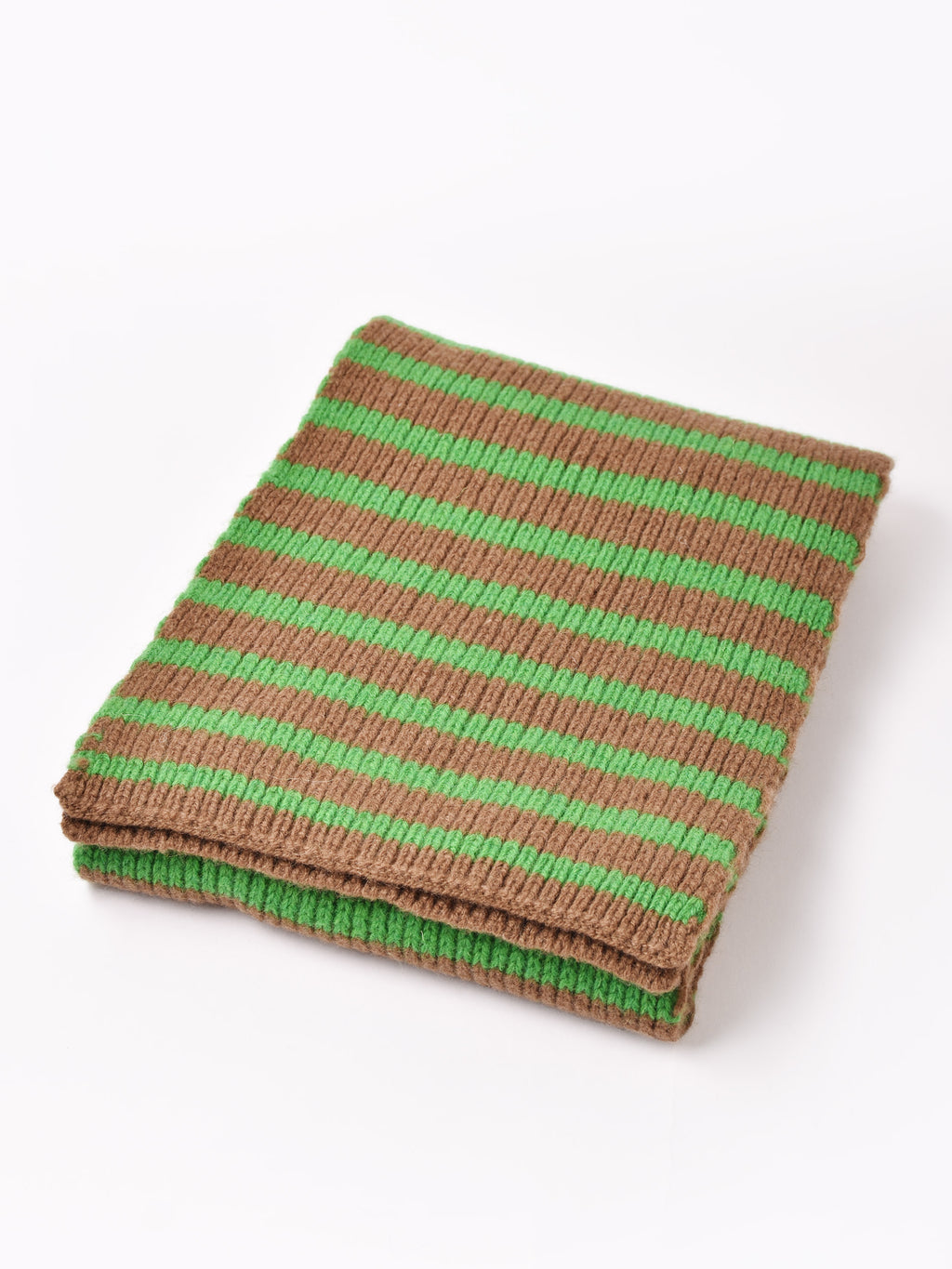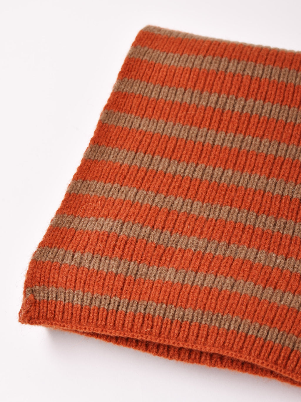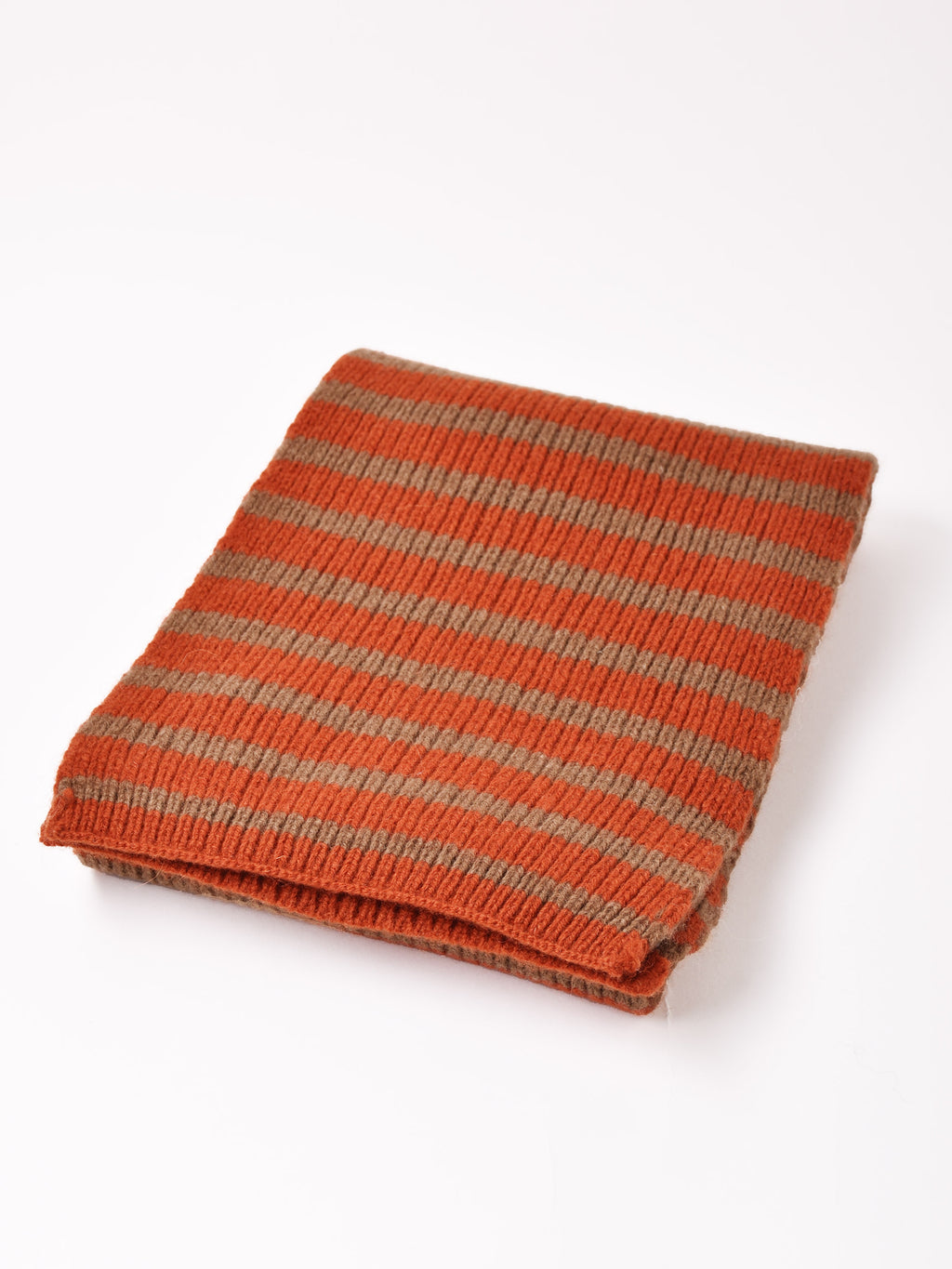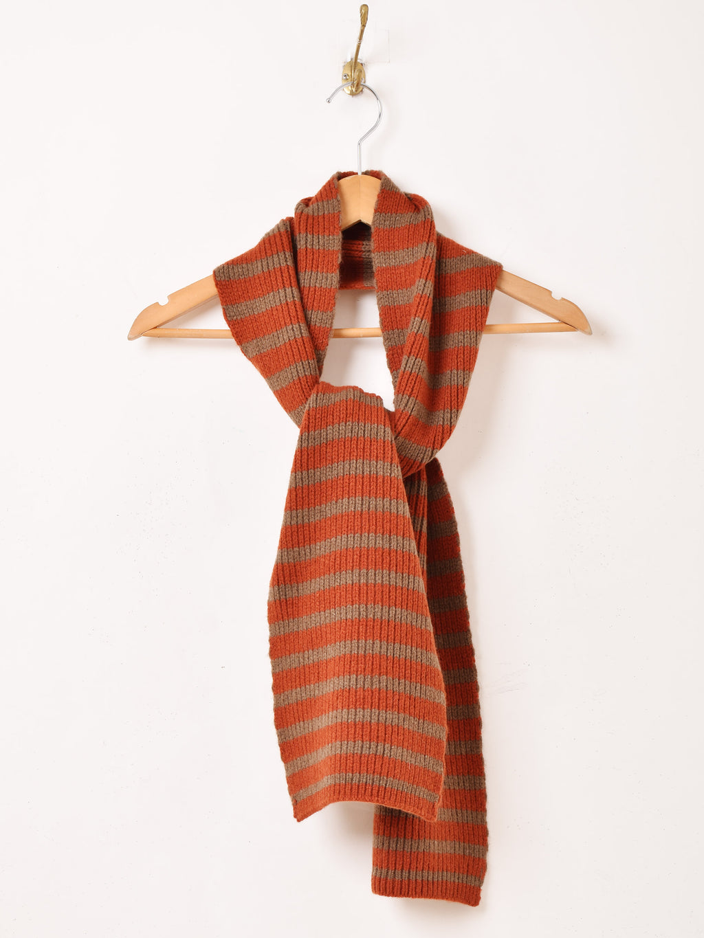 シンプルで使い勝手の良いボーダーマフラー。リブニットで伸縮性があります。秋冬コーデのちょっとしたアクセントにおすすめです。