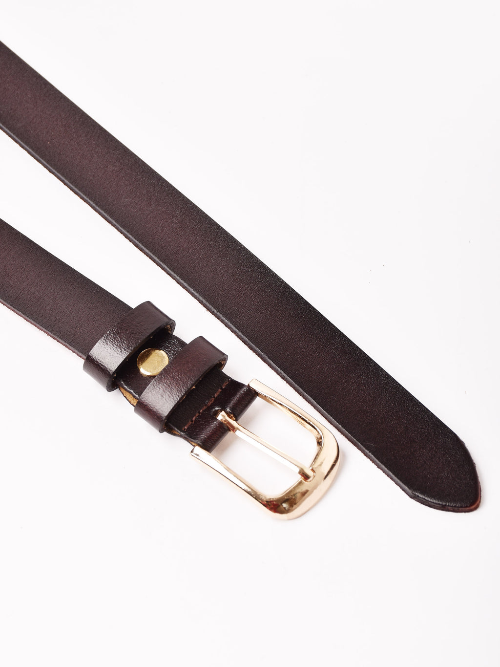 シンプルで使い勝手の良い、レザーの細ベルト。 ゴールドのバックルがポイントです。