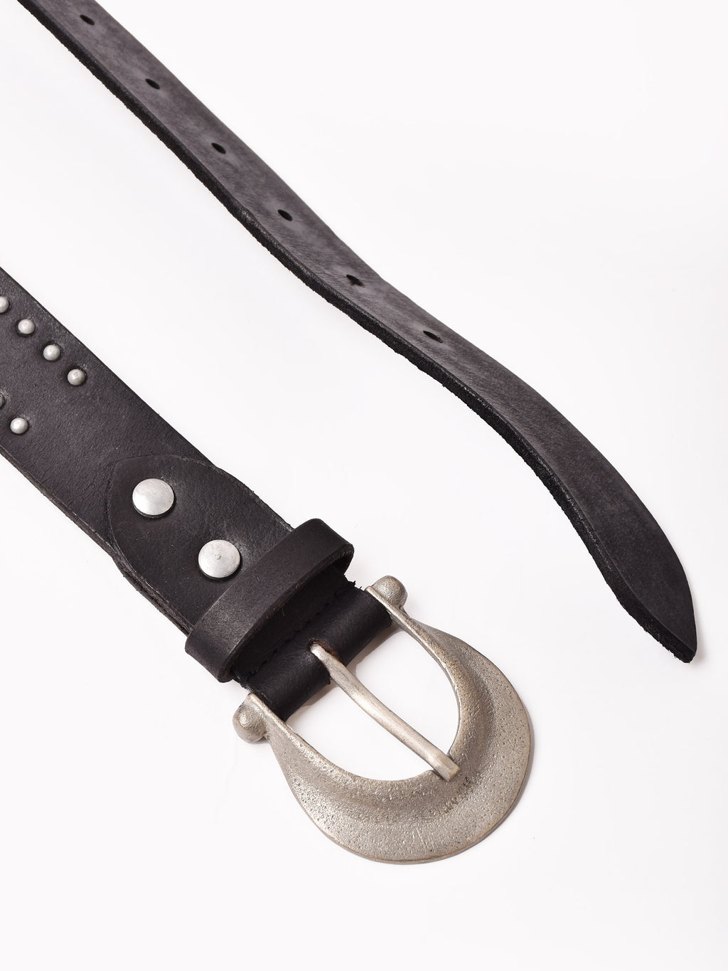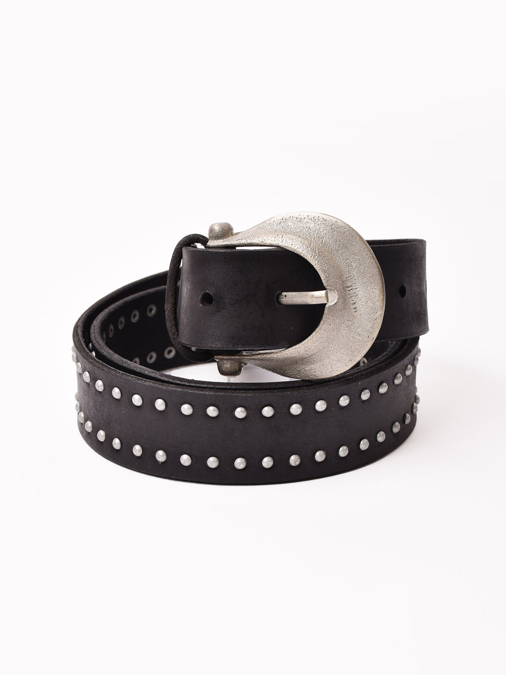 2本線にスタッズをあしらったシンプルなベルト。ヴィンテージライクなデザインで、エッジの効いたスタイリングに仕上げてくれる一点です。