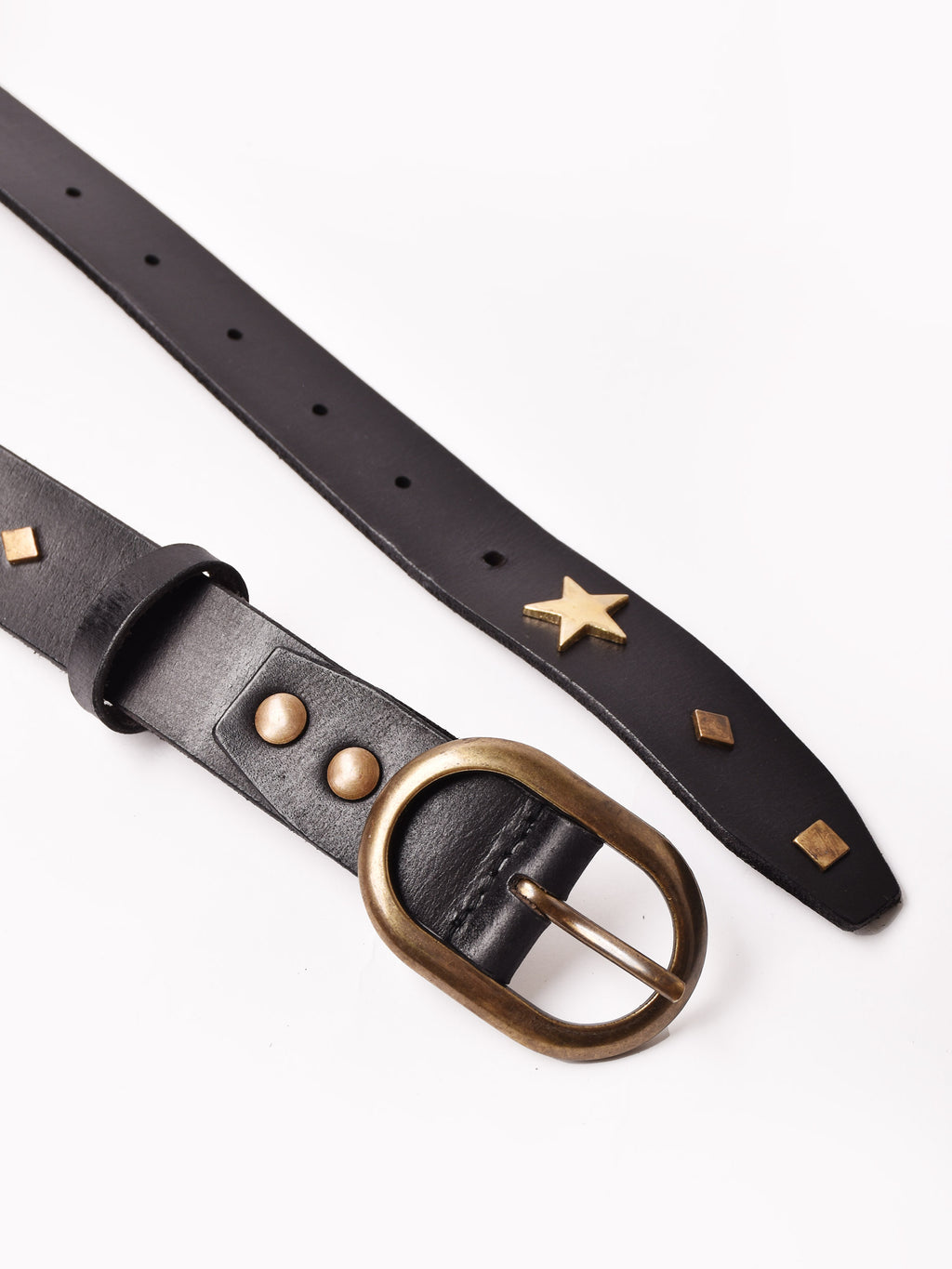 星のスタッズをあしらったベルト。ヴィンテージライクなデザインで、エッジの効いたスタイリングに仕上げてくれる一点です。