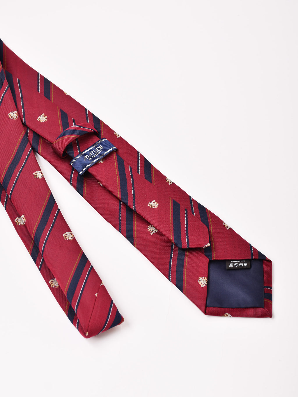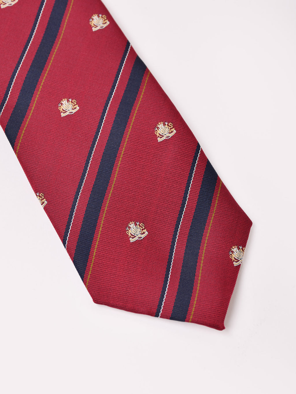 エンブレムもあしらい、プレッピーな雰囲気のレジメンタルタイ。ファッション用だけでなく、ビジネスや卒業・入学式シーズンなどのフォーマルシーンにもおすすめです。