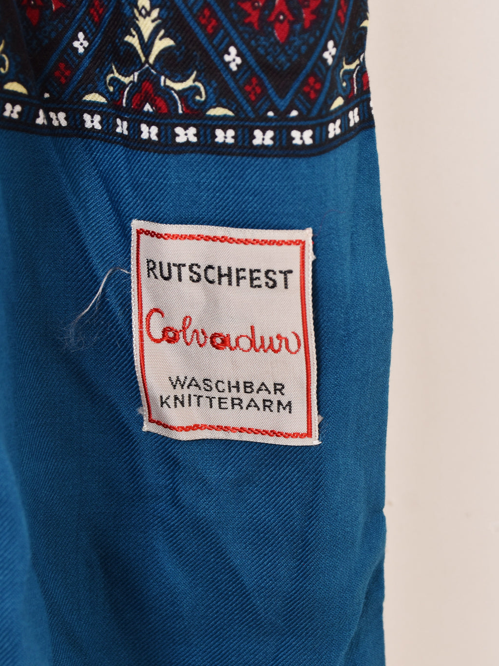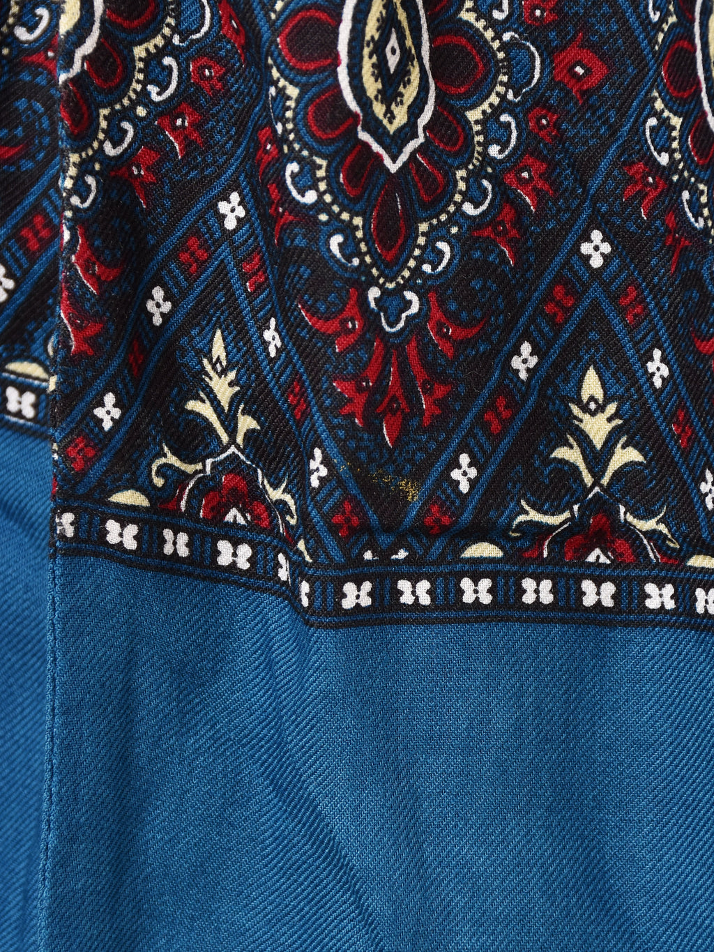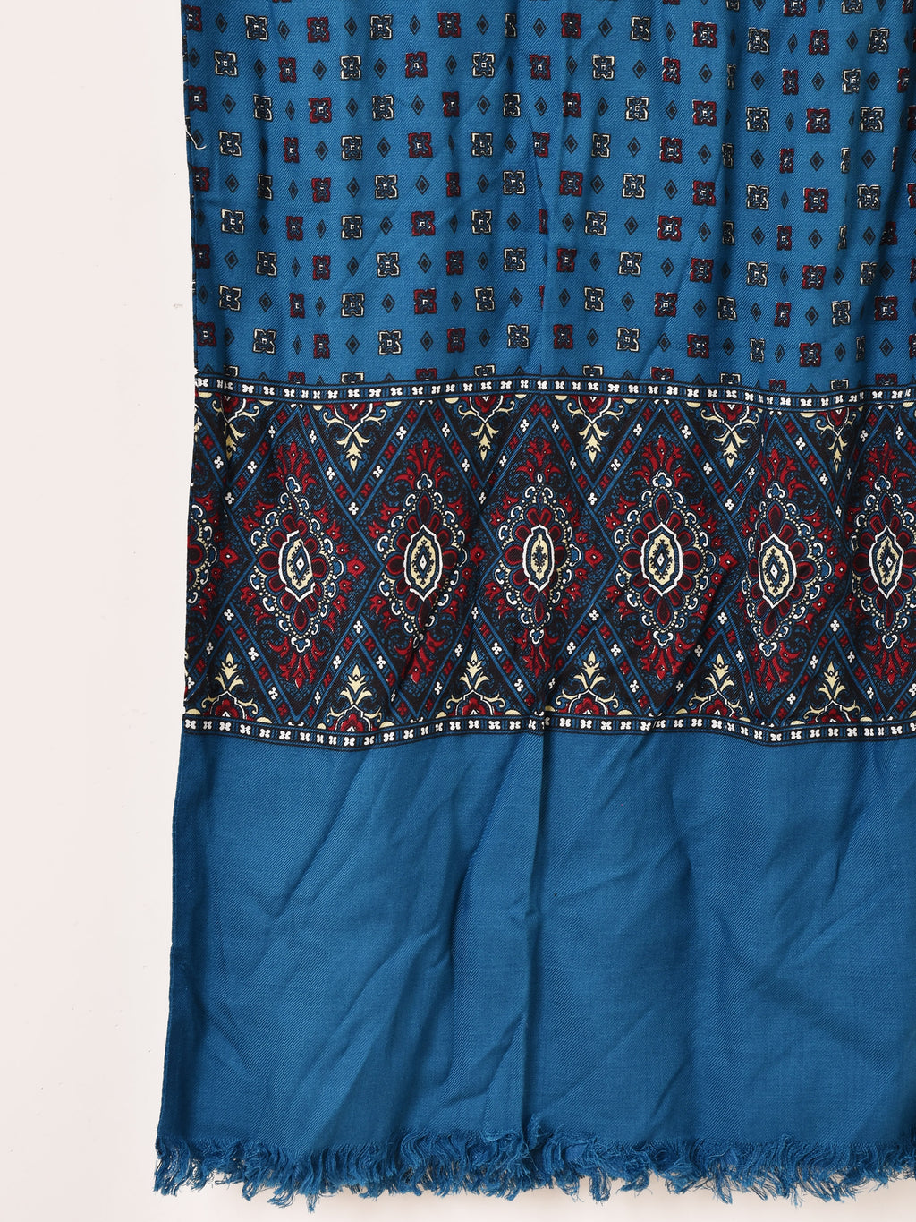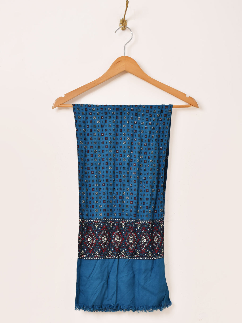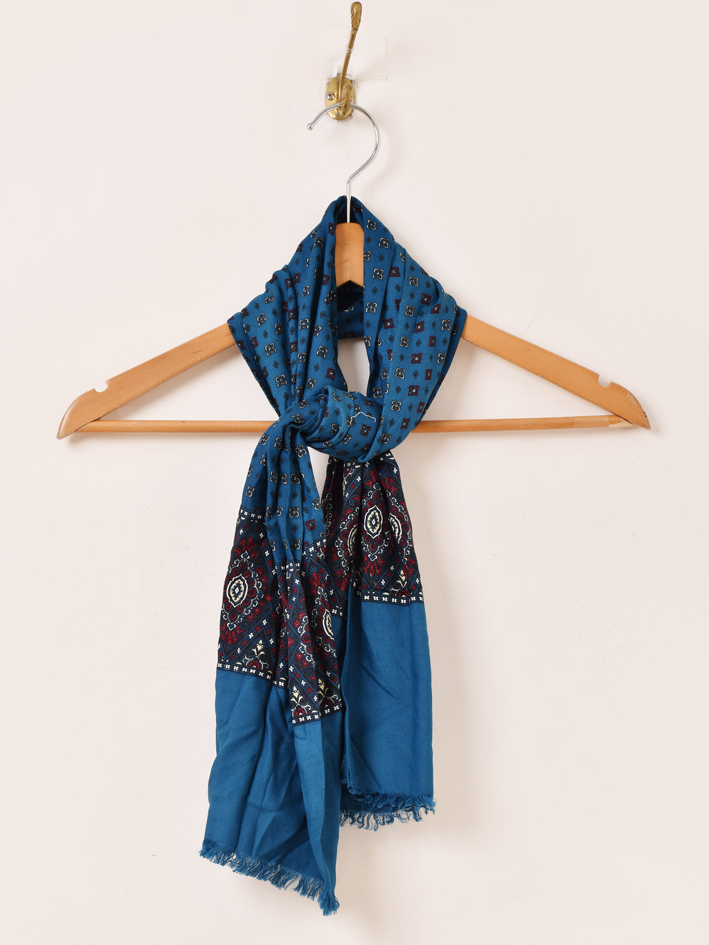 シックなブルーカラーのスカーフ。定番の小紋柄で使い勝手の良い一点です。