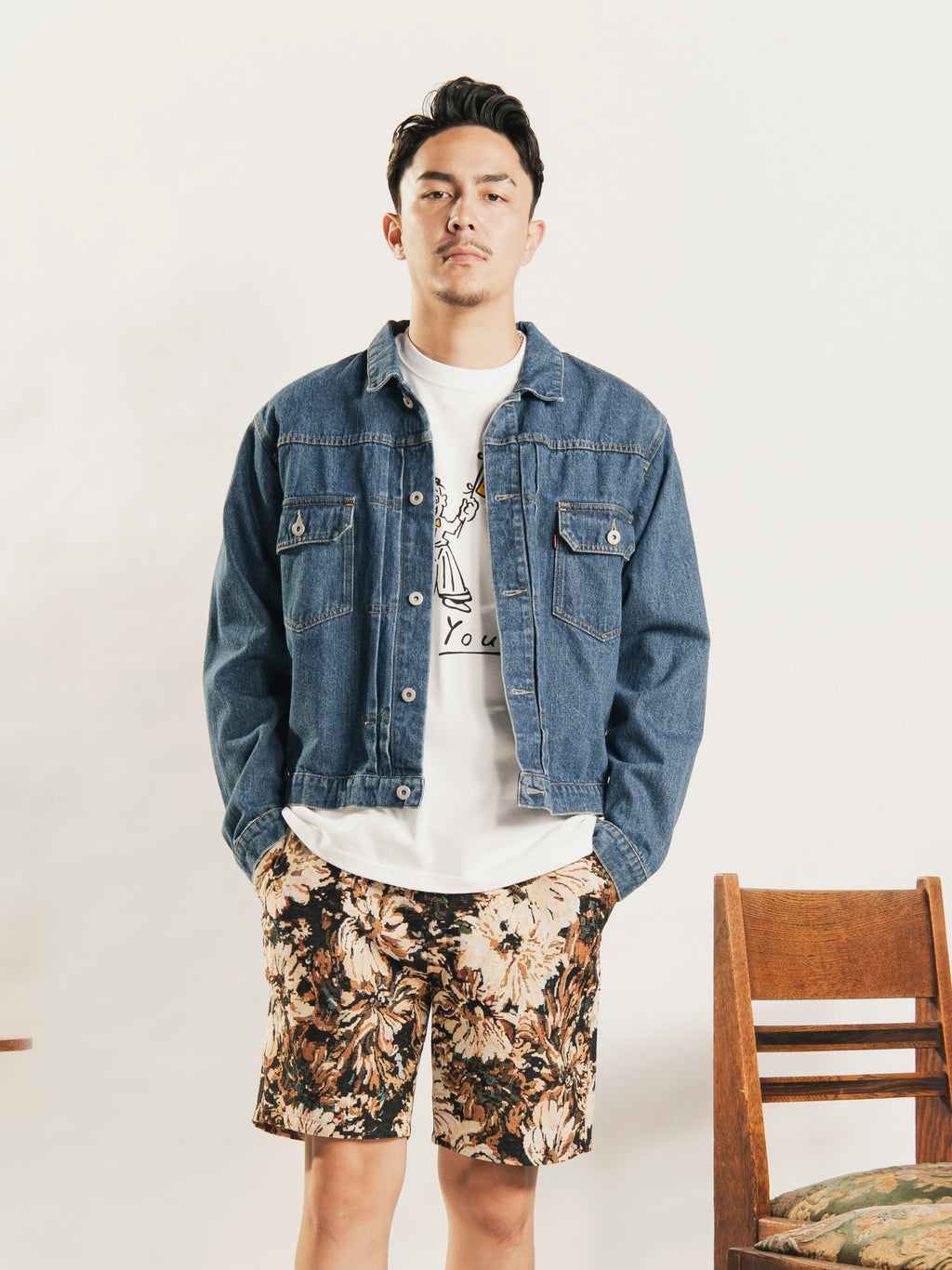 程よくウォッシュ加工が施されたデニムジャケット。両胸に備わったフラップポケットのシンメトリーなデザインや、サイドアジャスター仕様など、Levisのセカンドモデルのディテールを盛り込みサンプリングした一着です。しっかりとした生地感で、ワークジャケットのような雰囲気も魅力的です。
