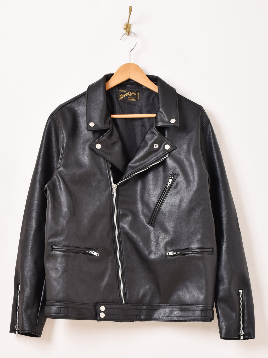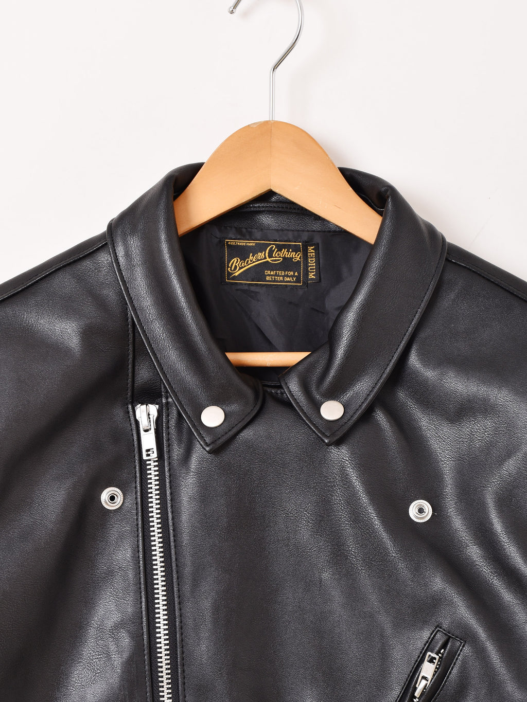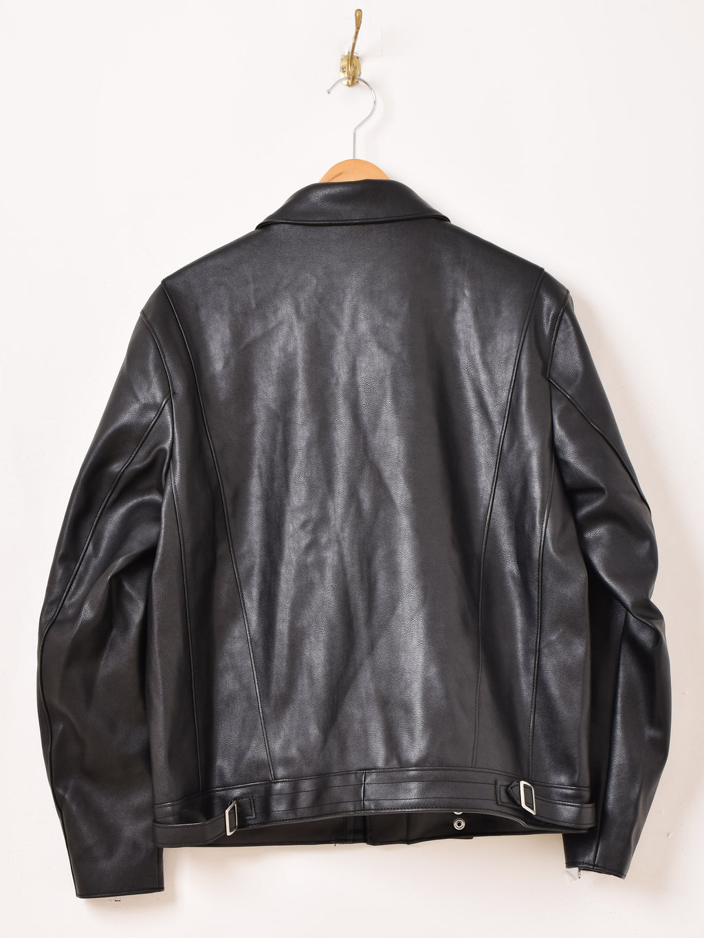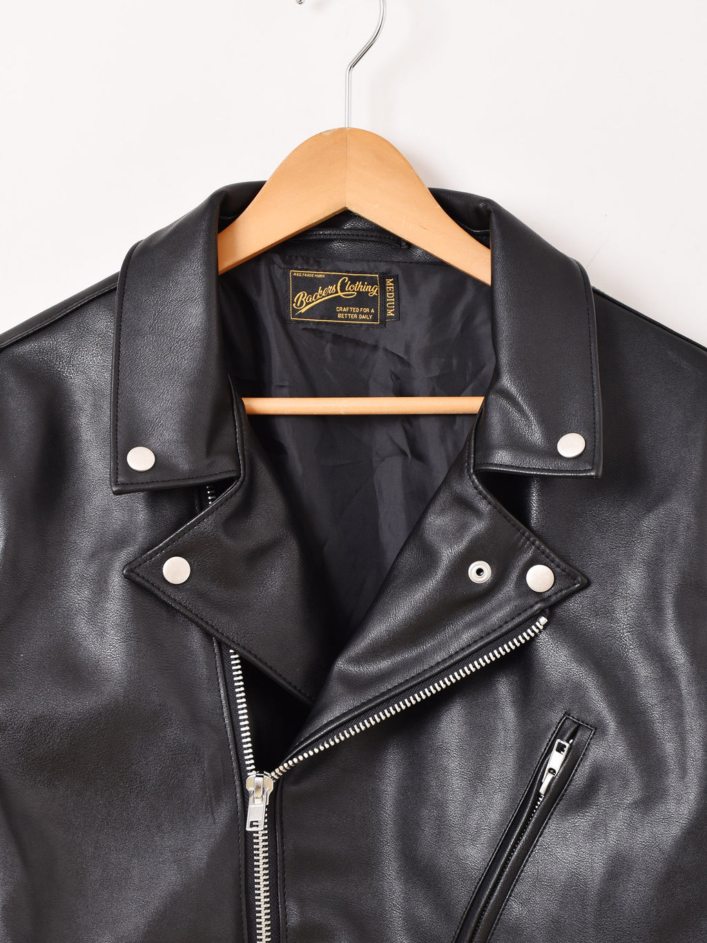 ロンジャン仕様のダブルライダーズジャケット。ミニマムでスタイリッシュなロンジャンのデザインを再現した一着です。比較的柔らかなフェイクレザー生地で仕立てているので、肌当たりよく着用できます。