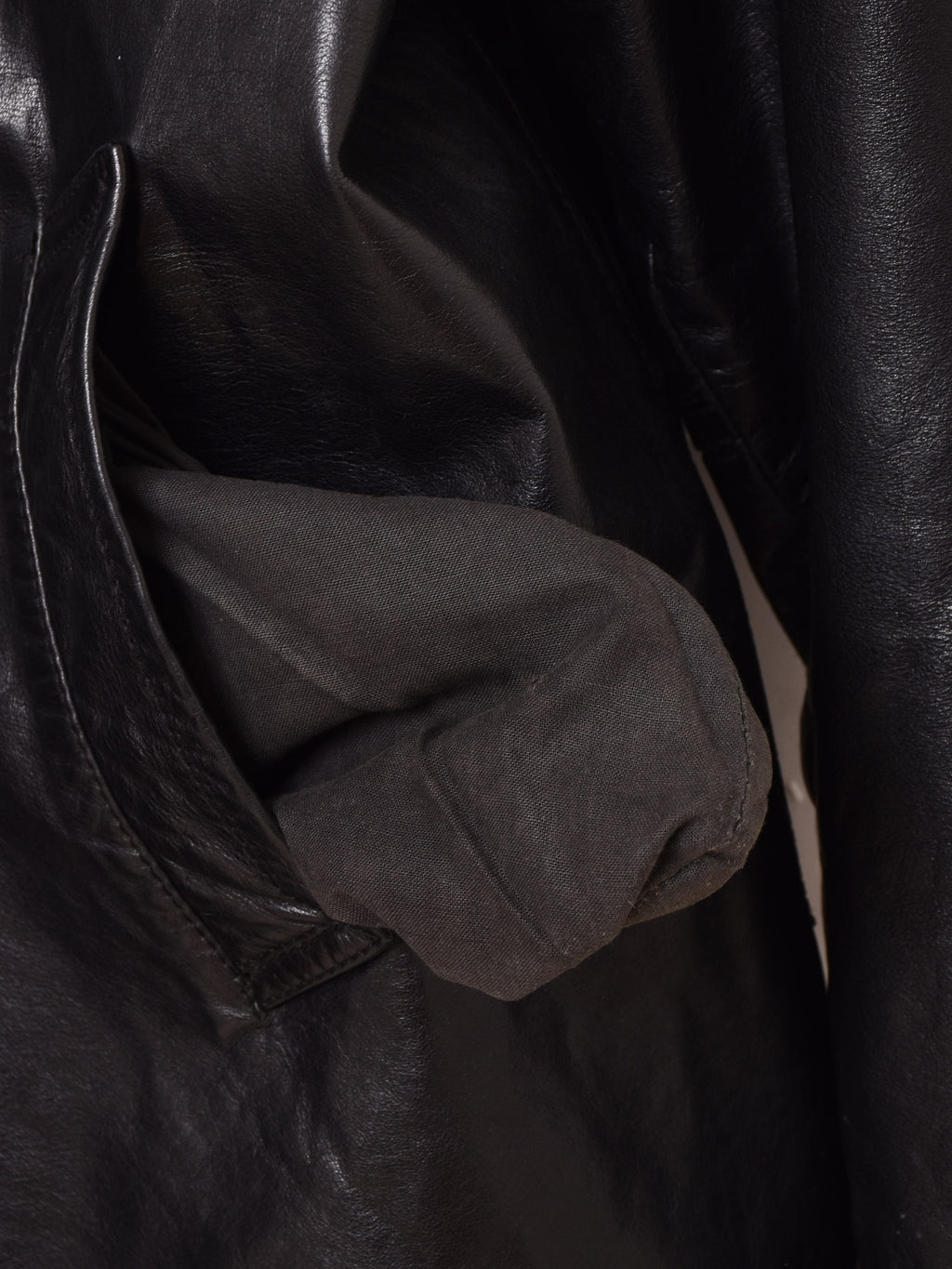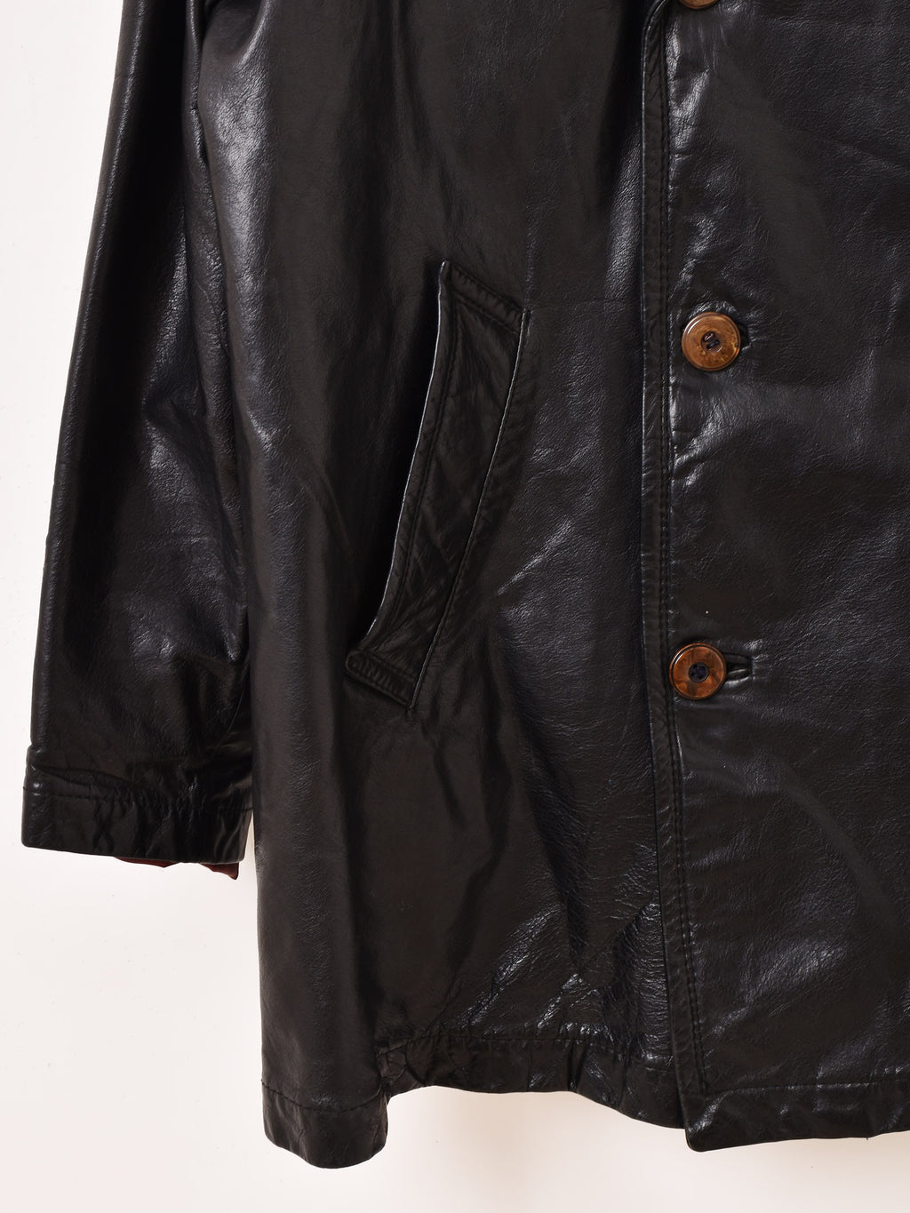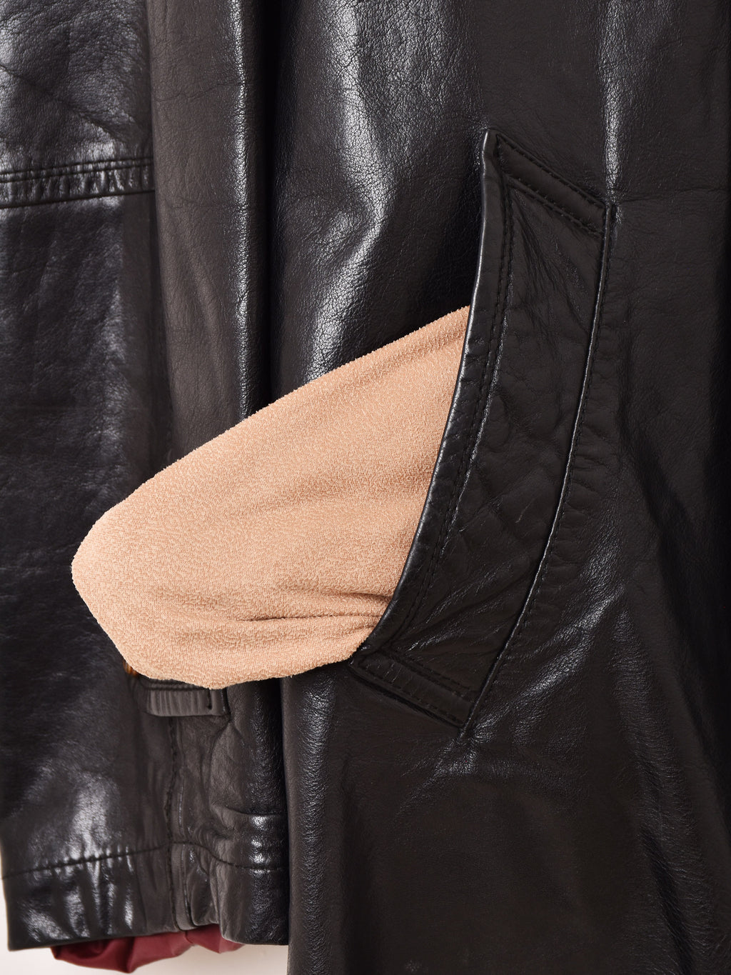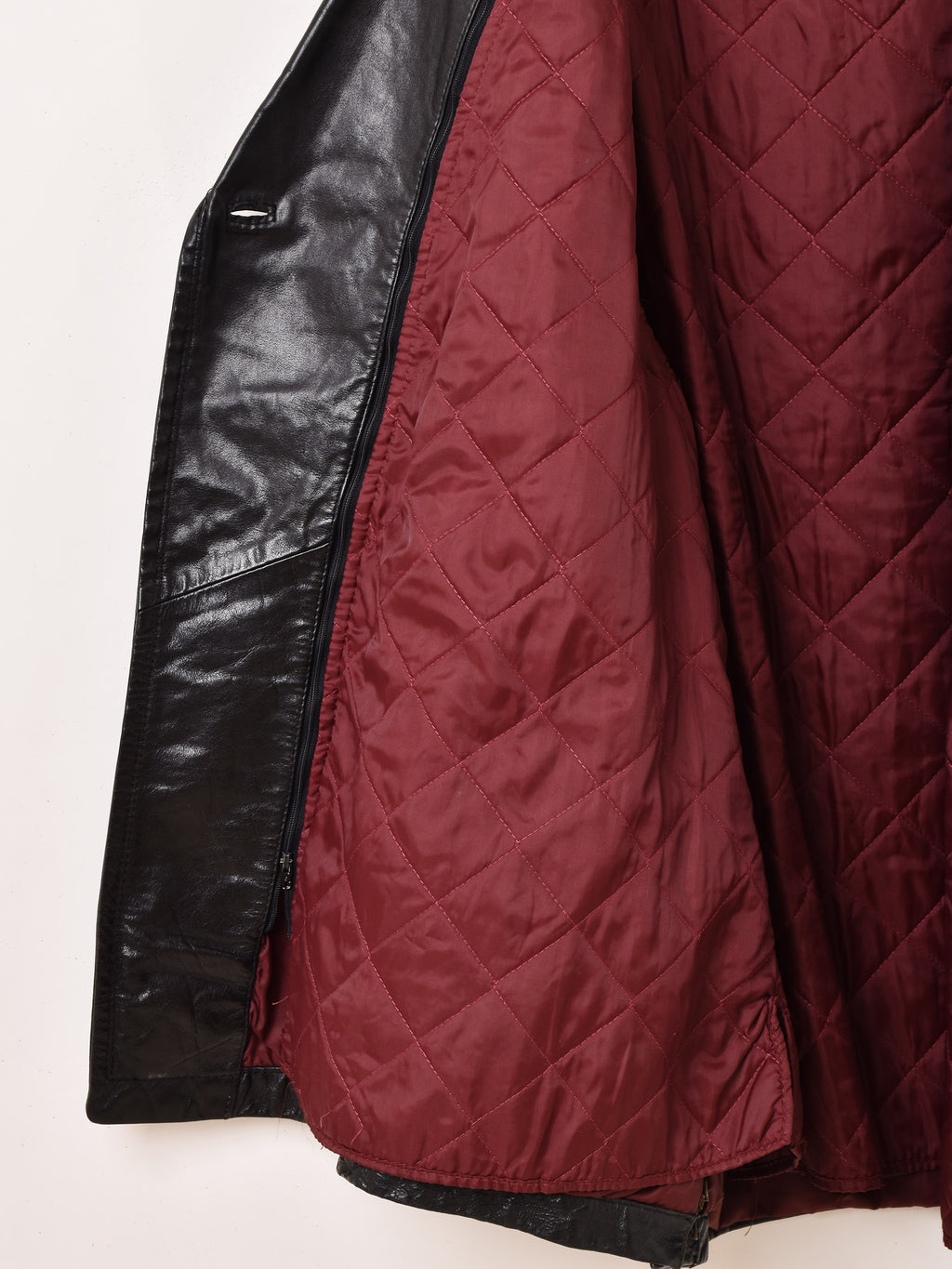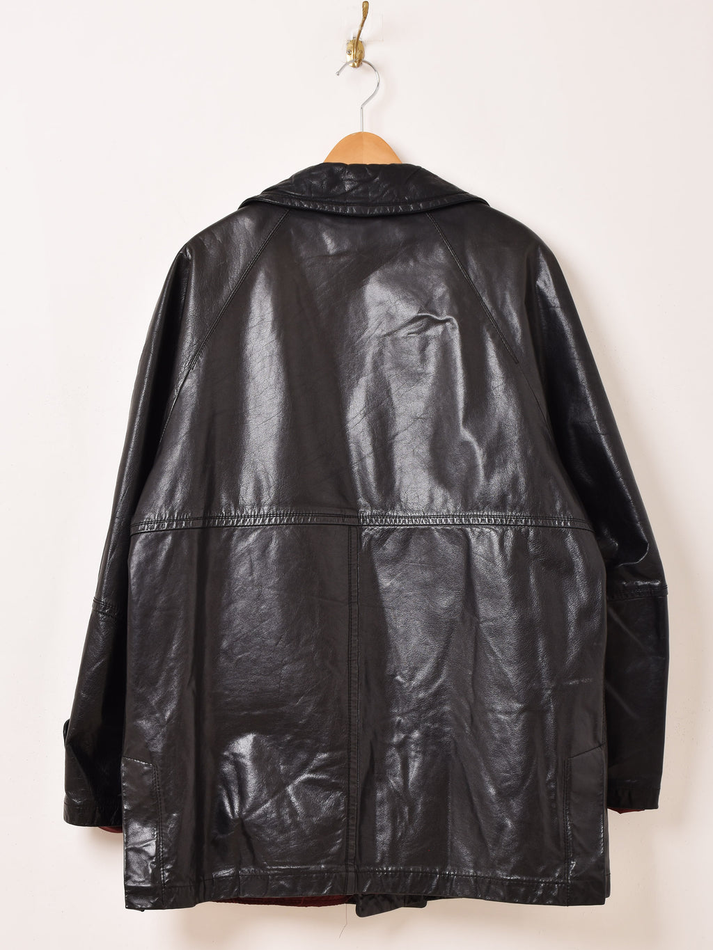 イタリアのブランドconbipelのレザージャケット。カーコートのようなデザインとサイズ感が無骨な雰囲気があり◎。取り外し可能なキルティングのライニングが付いています。