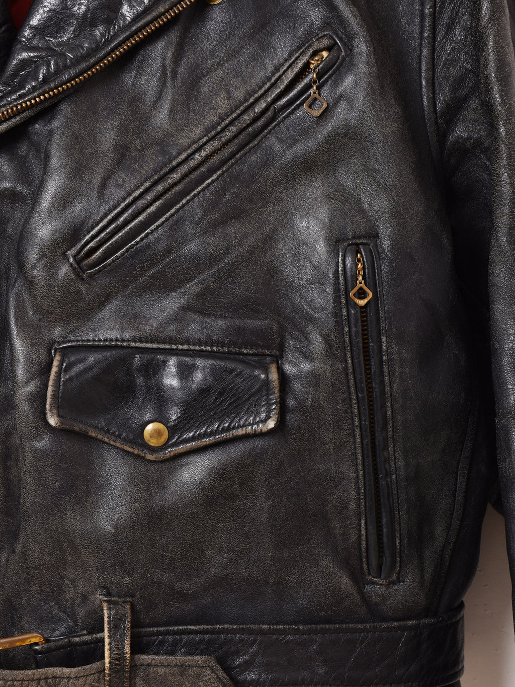 真っ赤なキルティングのライナーに、アメジャンらしいディテールとバイカーに特化したデザインが詰まった一着です。