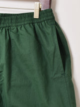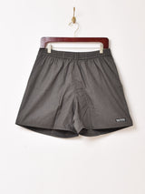 裾にロゴ入りピスネームが付いたシンプルなショーパン。メッシュの裏地付きでアウトドアにもおすすめです。コットンポリのシャリっとした軽い生地です。