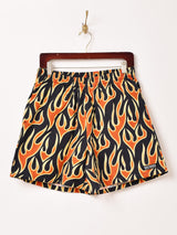 派手でインパクトのあるファイヤーパターンが目を惹くショーパン。シャカシャカとした肌触りのコットン生地です。