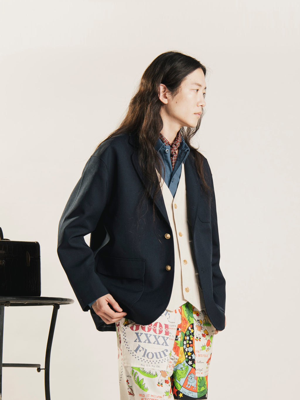 シンプルながらもトラッドでクラシカルなブレザー。ゴールドのボタンがアクセントになっています。裏地付きのポリエステル素材です。