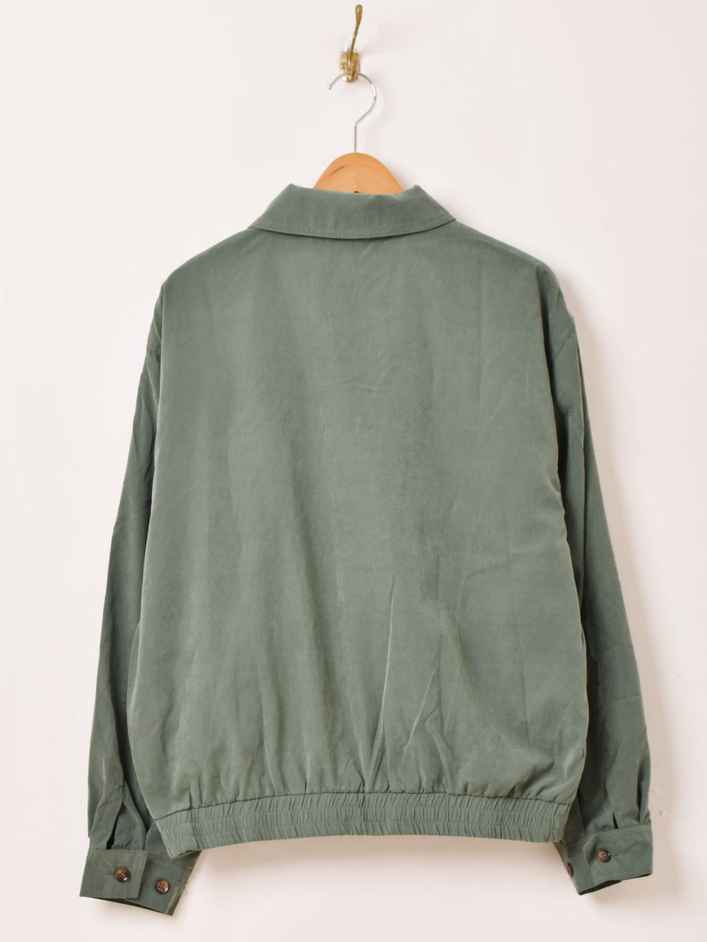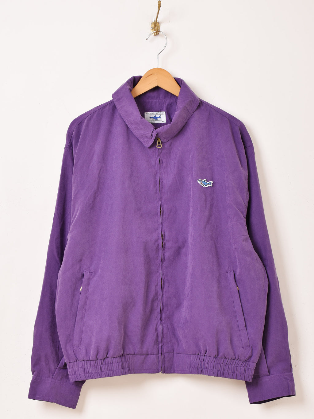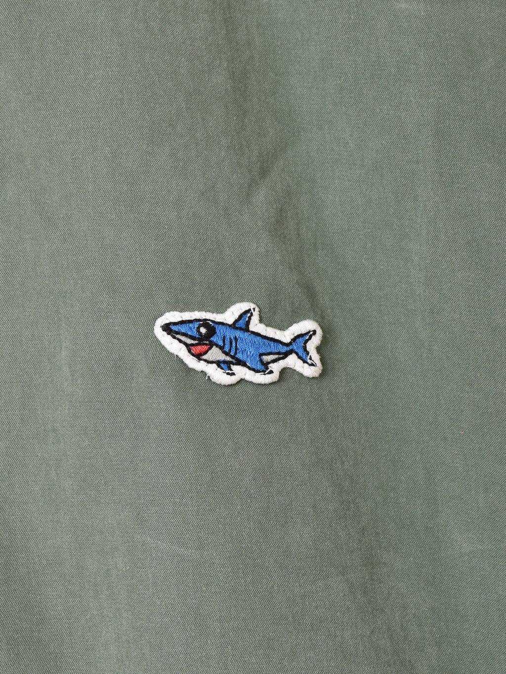 胸元にサメのワンポイントデザインをあしらったジップアップジャケット。軽く柔らかいピーチスキン素材で、着心地の良い一着。ヘビーなアウターの下に、インナージャケットとして着るのもおすすめです。
