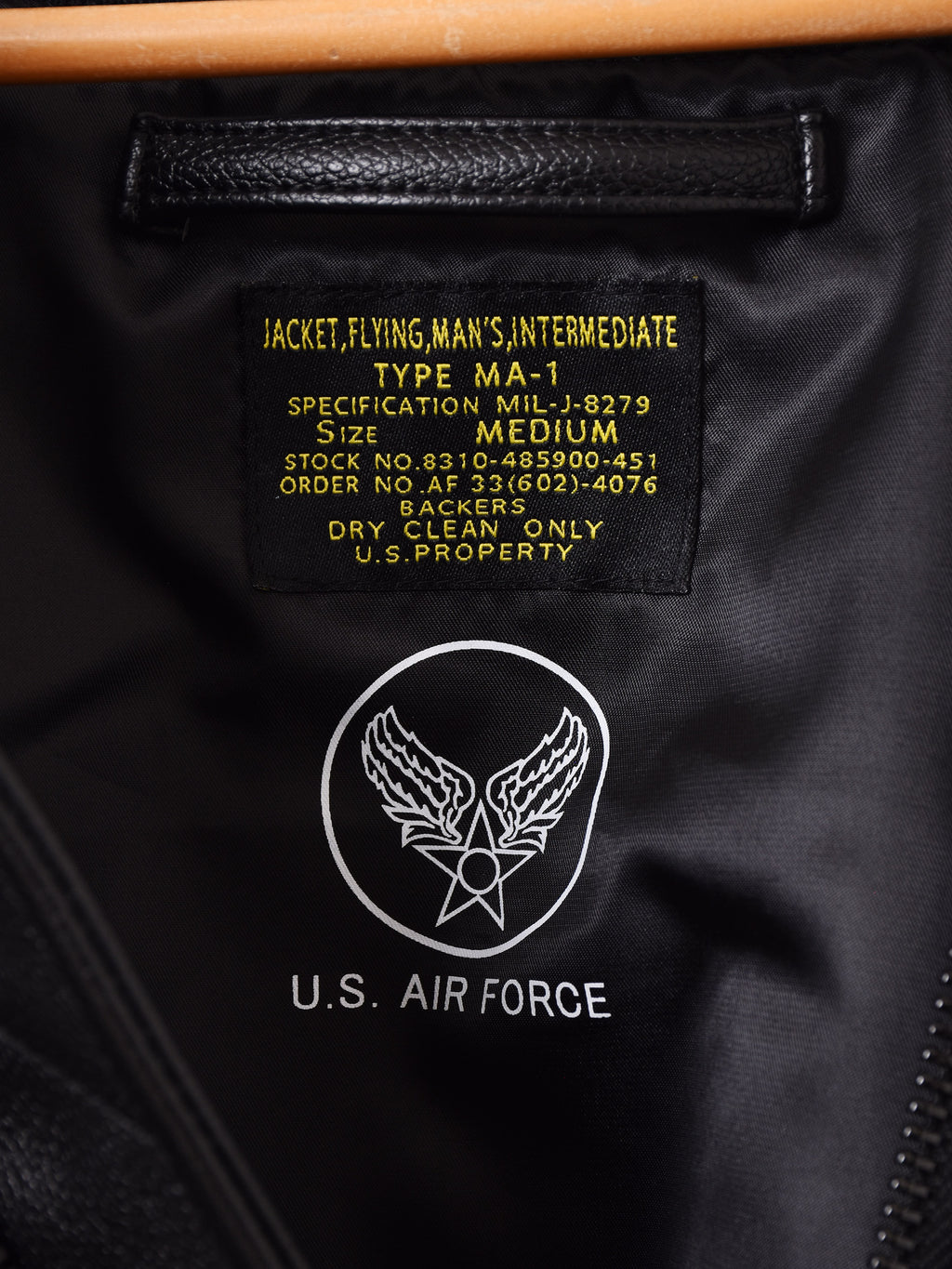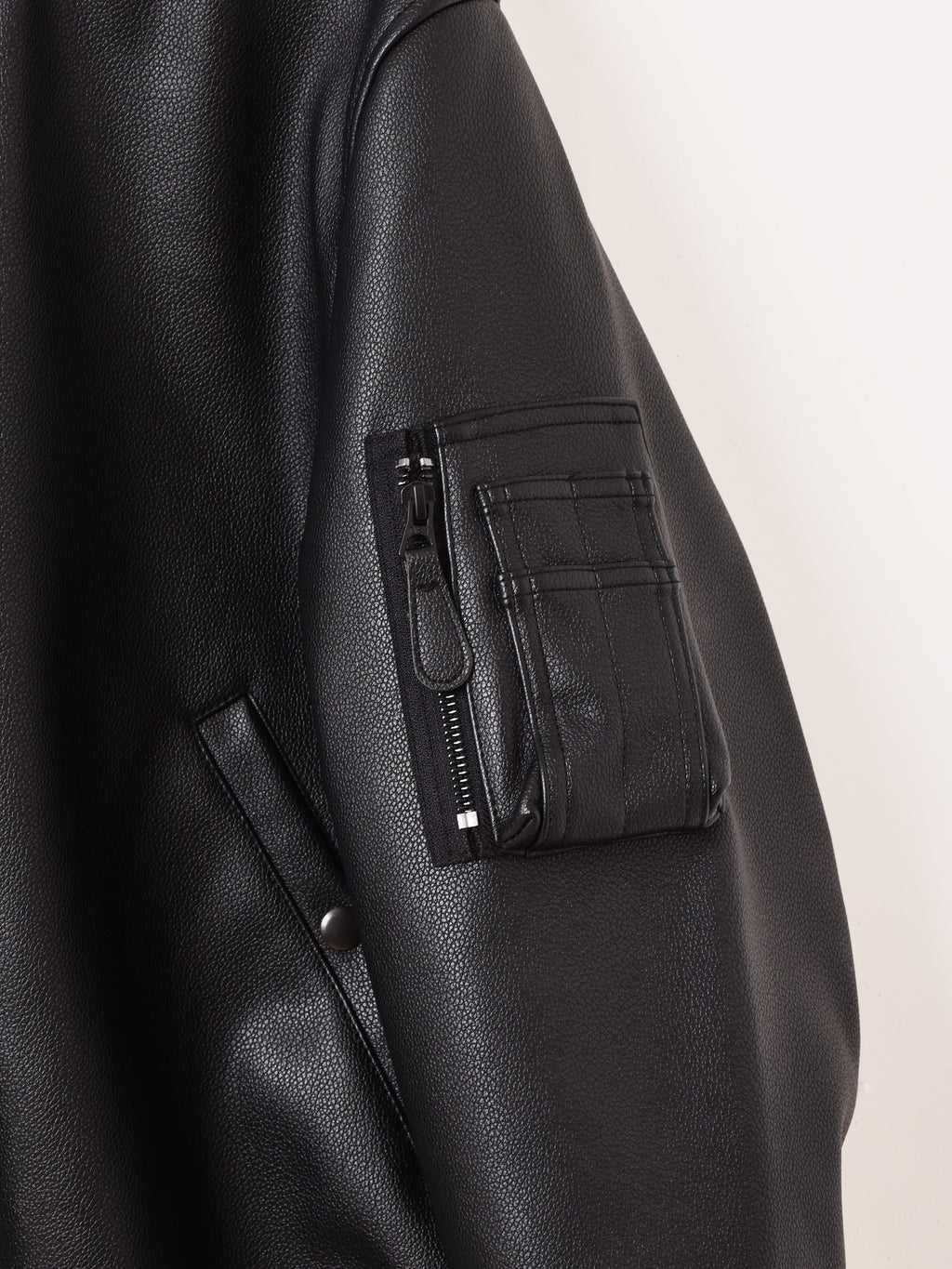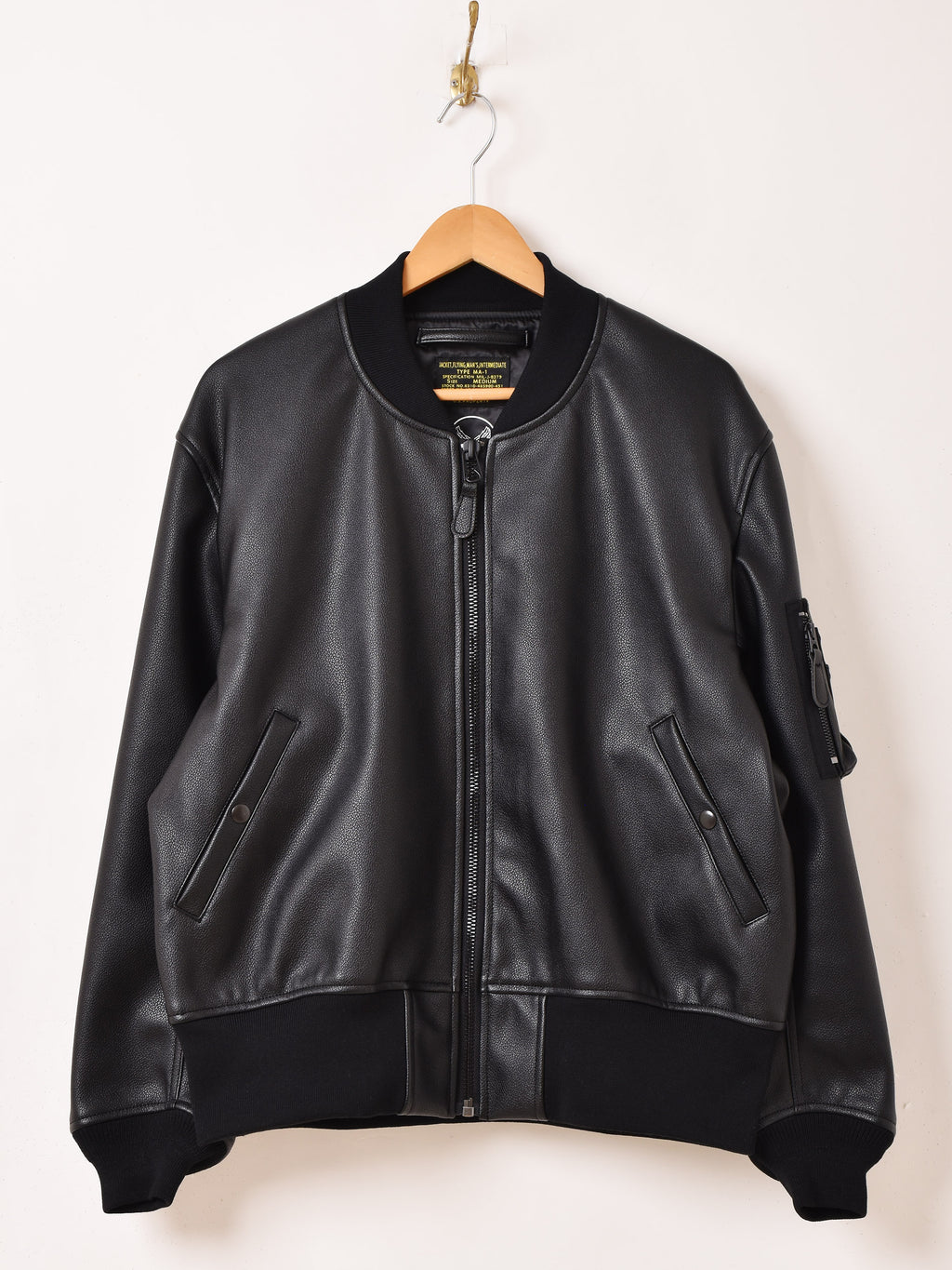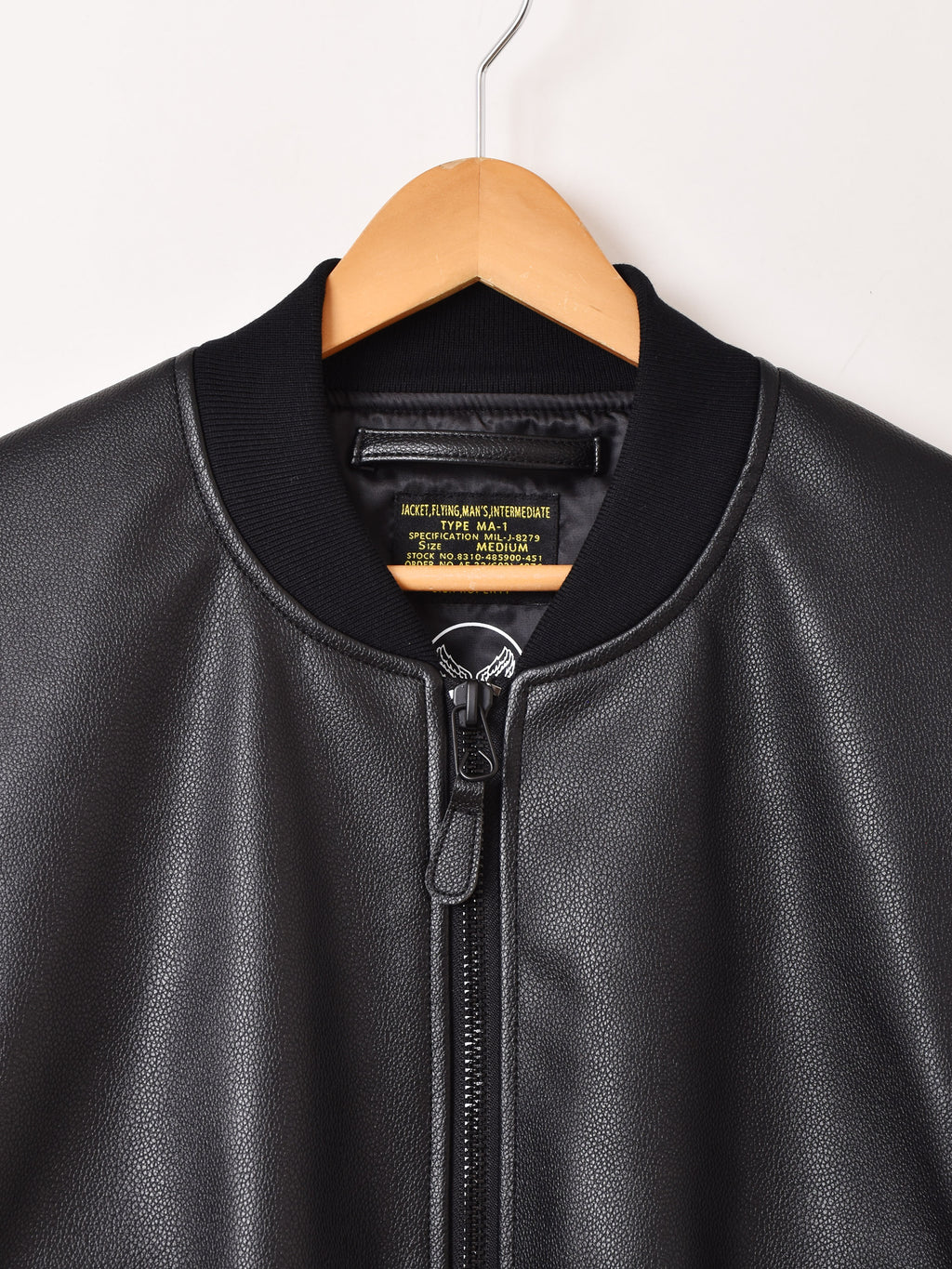 アメリカ空軍で採用されているMA-1をサンプリングし、フェイクレザーで仕立てたフライトジャケット。ミルスペックや二の腕のシガレットポケットなど、本物に近いディテールをふんだんに詰めた一着です。