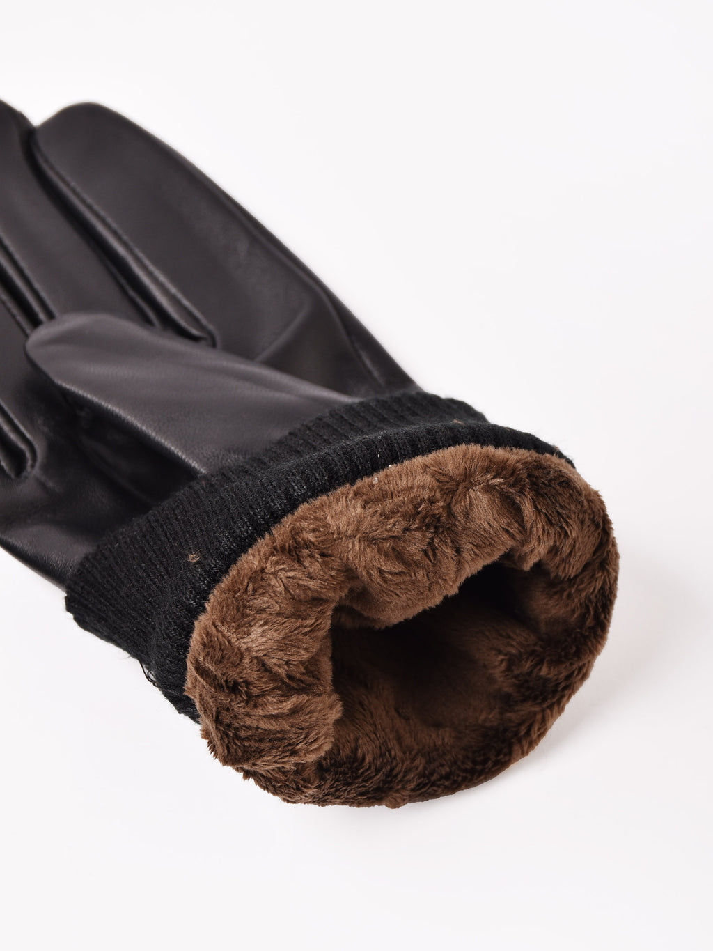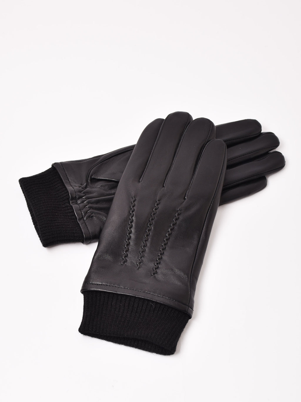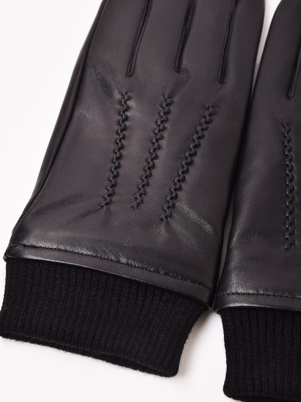 ステッチデザインが入った手袋。柔らかなシープスキンを使用しています。手首はリブ仕様、裏地はフリース生地で防寒・防風もバッチリ。